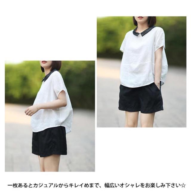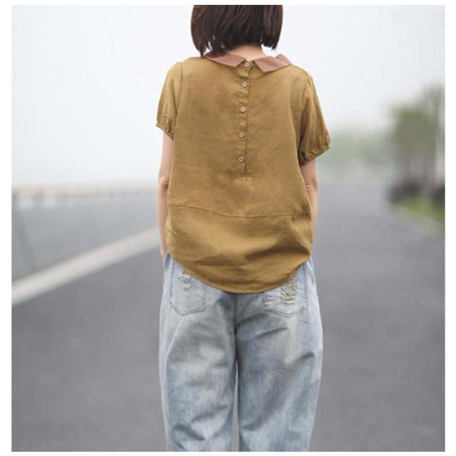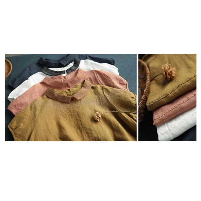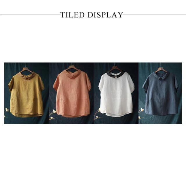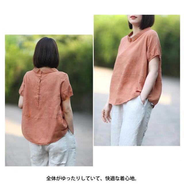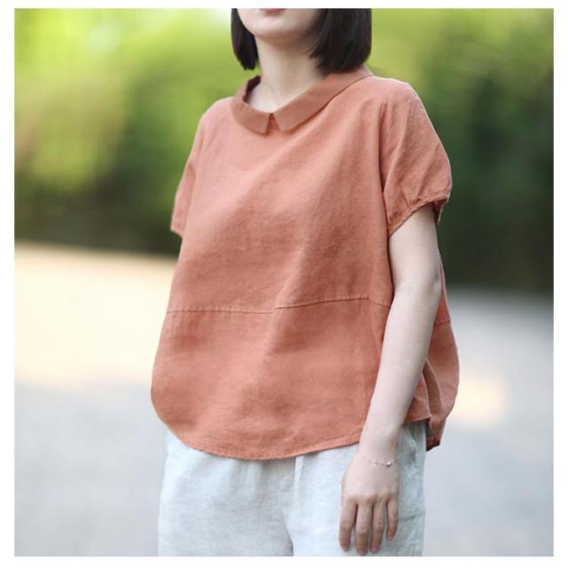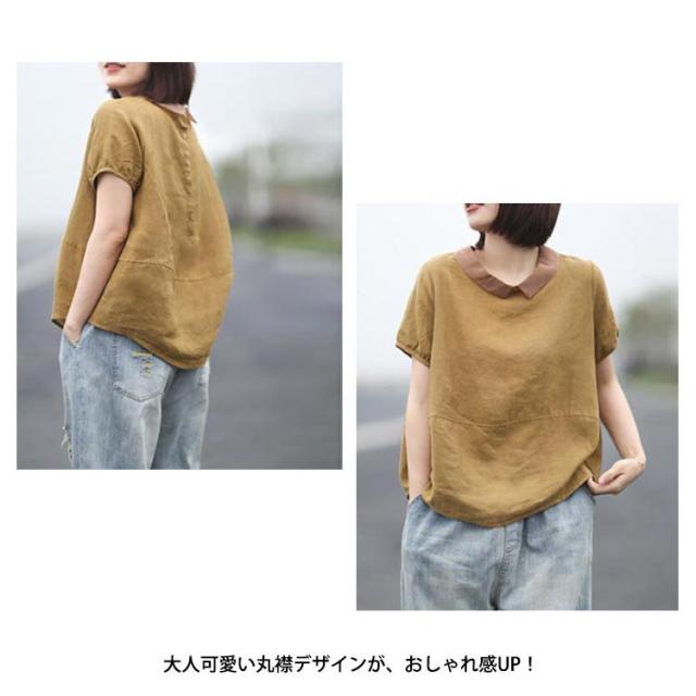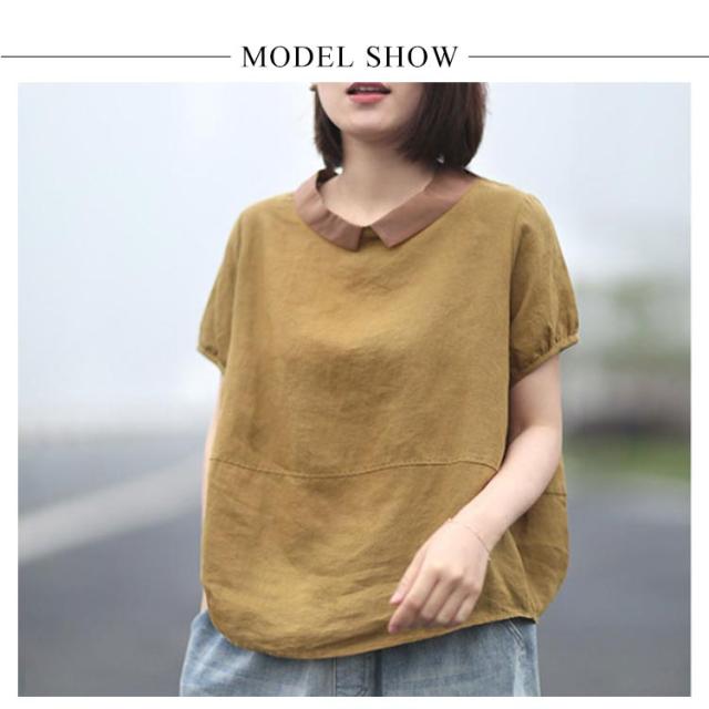 ブラウス 半袖 レディース 丸襟ブラウス トップス 半袖ブラウス プルーオーバー 綿麻風 ナチュラル カジュアル 綿 コットン シンプル 薄手 無地 春 夏 送料無料 20代 30代 40代 50代