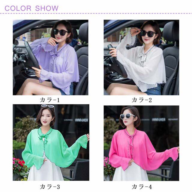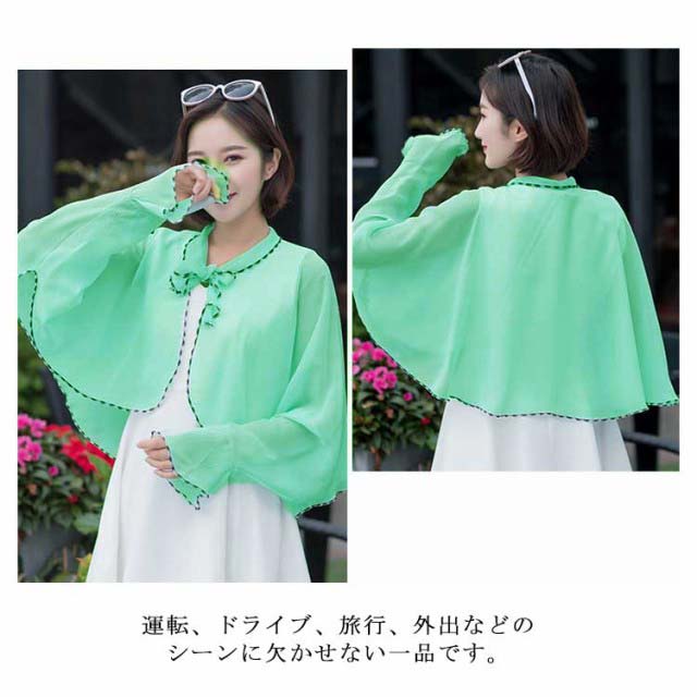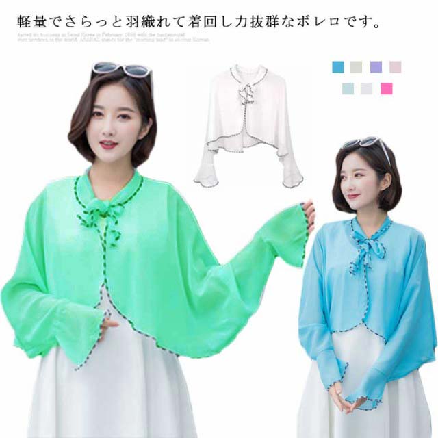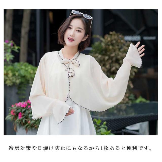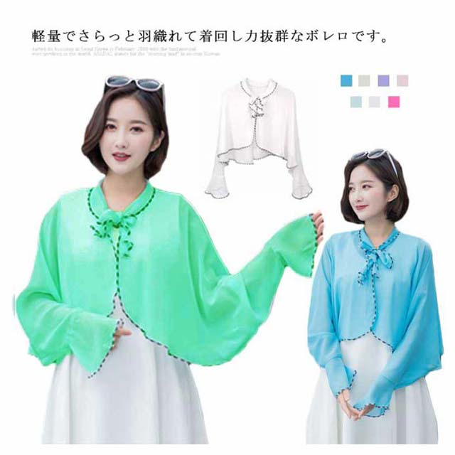 ボレロ レディース UVカット ショール アームカバー 無地 シフォン 紫外線対策 冷房対策 日焼け止め 通気性 運転 自転車 通勤 旅行 アウトドア ジャージ キレイめ 清涼感