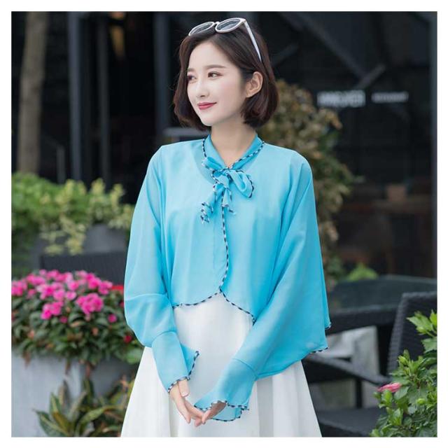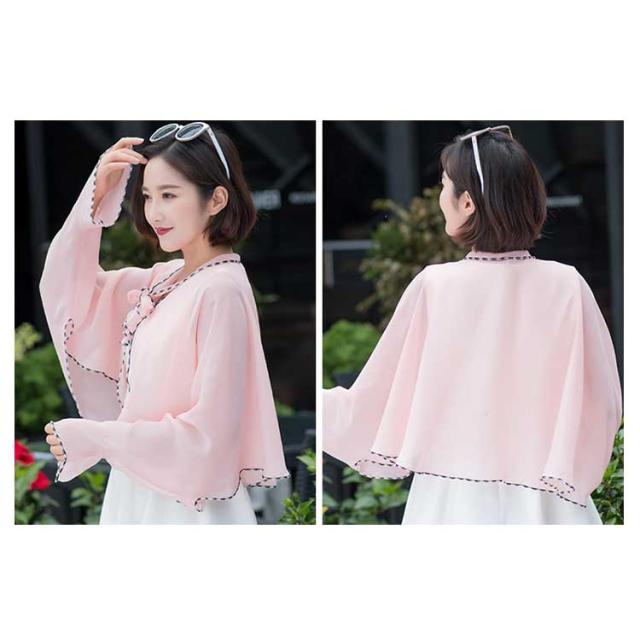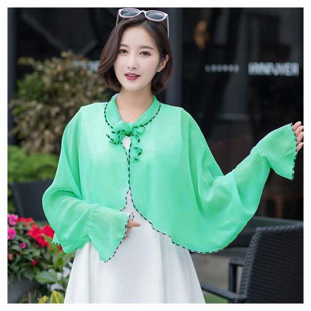 | 軽量でさらっと羽織れて着回し力抜群なボレロです。 柔らかくて快適なシフォン素材がふわふわで蒸れにくく、通気性にも優れた。 フレアの袖口はファッション感たっぷり、腕のラインを演出してくれます。 冷房対策や日焼け防止にもなるから1枚あると便利です。 運転、ドライブ、旅行、外出などのシーンに欠かせない一品です。 | |