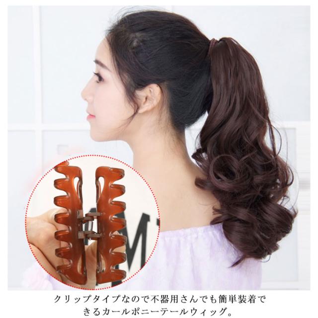 ポニーテール ウィッグ クリップ ワンタッチ ウェーブ ゆるかわ カール セミロング ポイントウィッグ エクステ かつら 部分ウィッグ つけ毛 巻き髪 可愛い 結婚式 コスプレ