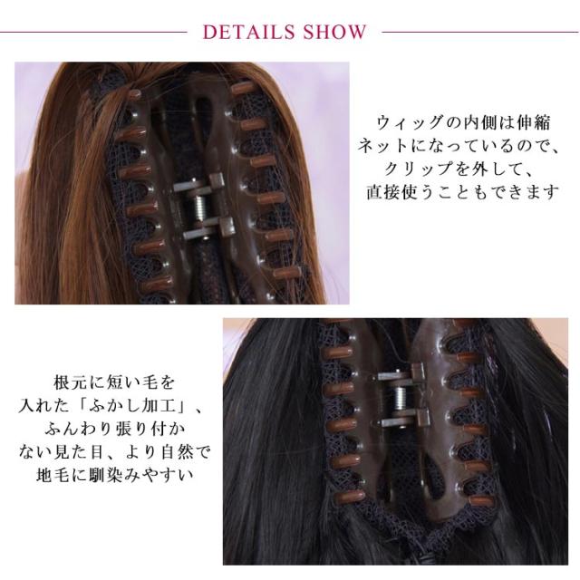 | ふんわりカールが大人可愛い♪ ワンタッチでキレイなウェーブポニーテールが完成! クリップタイプなので不器用さんでも簡単装着できるカールポニーテールウィッグ。 ふんわり巻き髪で大人かわいいを演出し、ウィッグ初心者さんでも簡単にイメチェンを楽しめる。 ウィッグ特有のテカリのない上質なマットファイバーを使用し、いつでもサラサラなヘアスタイルに。 デイリーのオシャレや通勤はもちろん、コスプレ・仮装にも大活躍すること間違いなし! | |