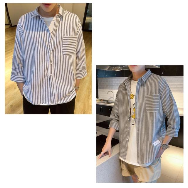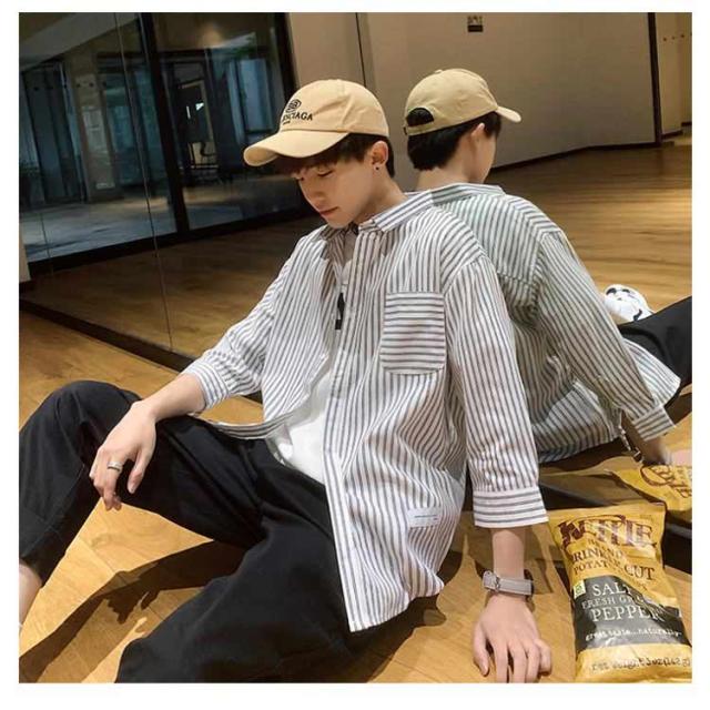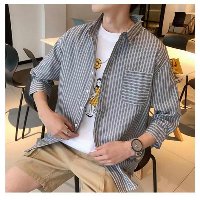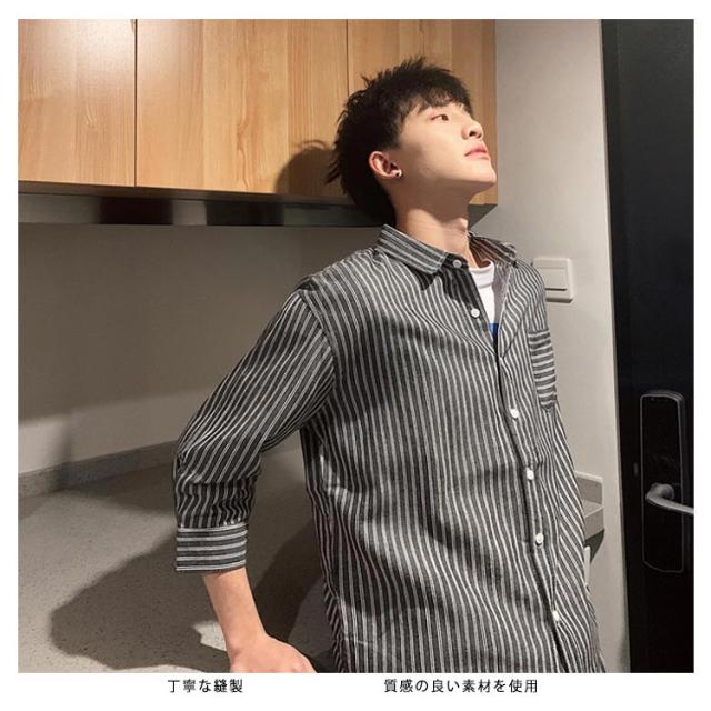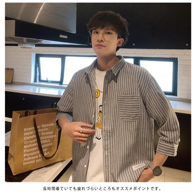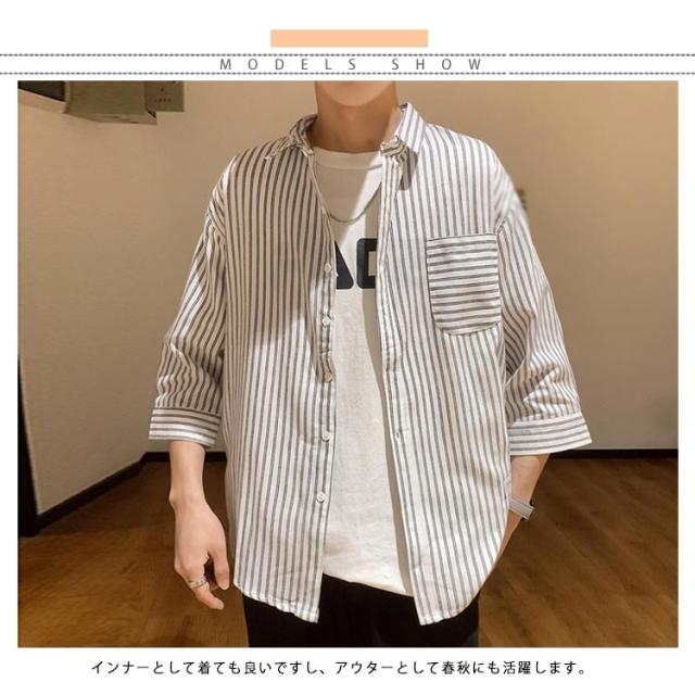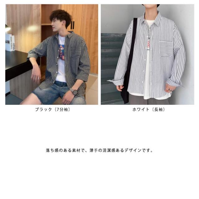 長袖シャツ ストライプ柄 カジュアルシャツ Yシャツ ゆったり メンズ 柄シャツ ストライプ 落ち感 薄手 ゆったり 通勤 通学 新作