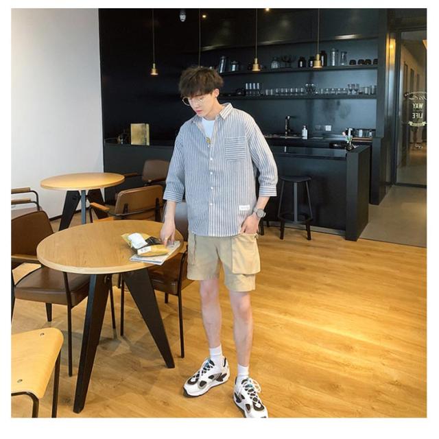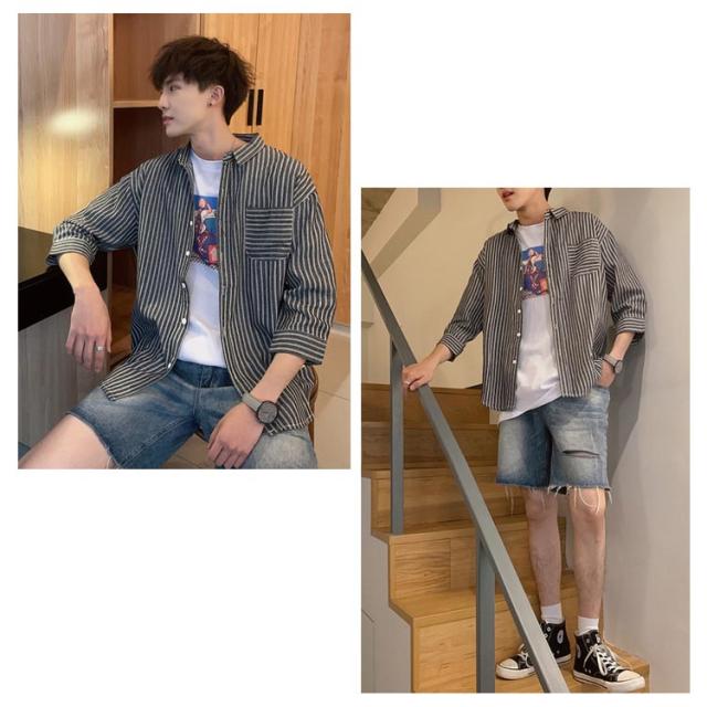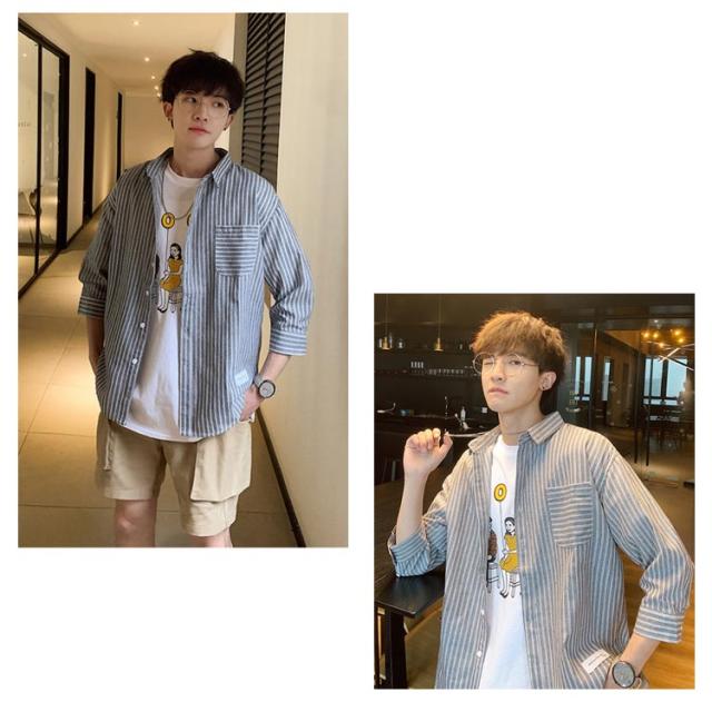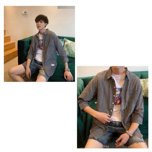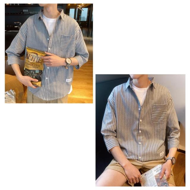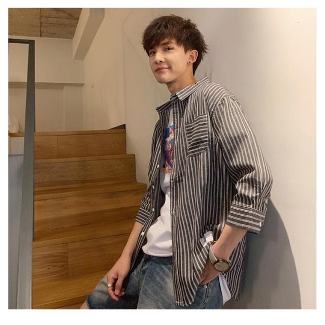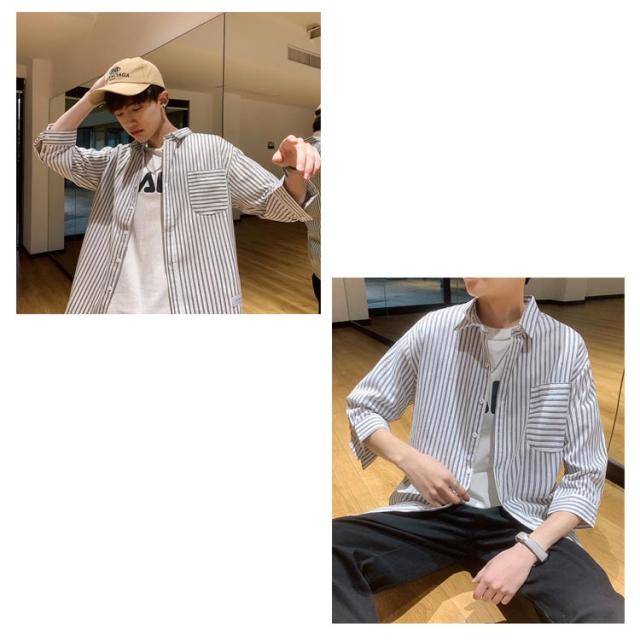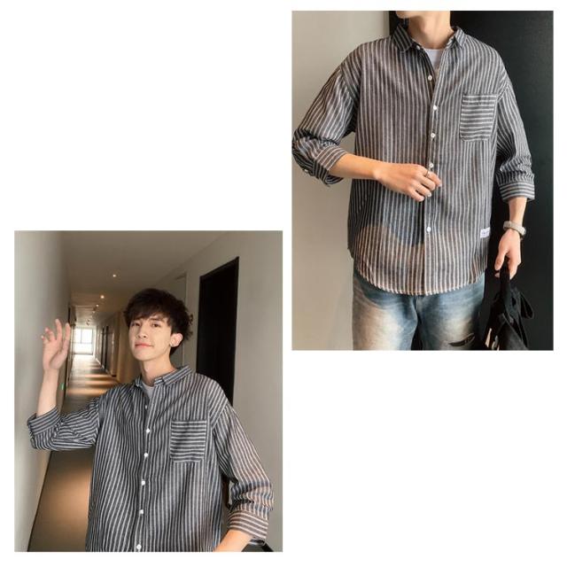 | 当店人気のメンズストライプシャツに長袖が登場しました。 落ち感のある素材で、薄手の清潔感あるデザインです。 インナーとして着ても良いですし、アウターとして春秋にも活躍します。 長時間着ていても疲れづらいところもオススメポイントです。 | |