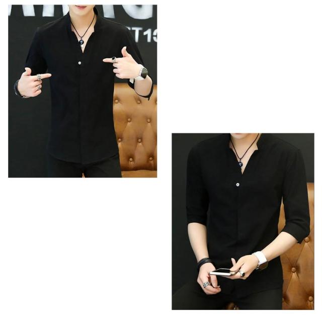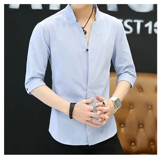 長袖シャツ 5分袖シャツ メンズ オックスフォード タイトシャツ Yシャツ 無地 カジュアルシャツ ビジネスシャツ メンズファッション おしゃれ 通勤 新作