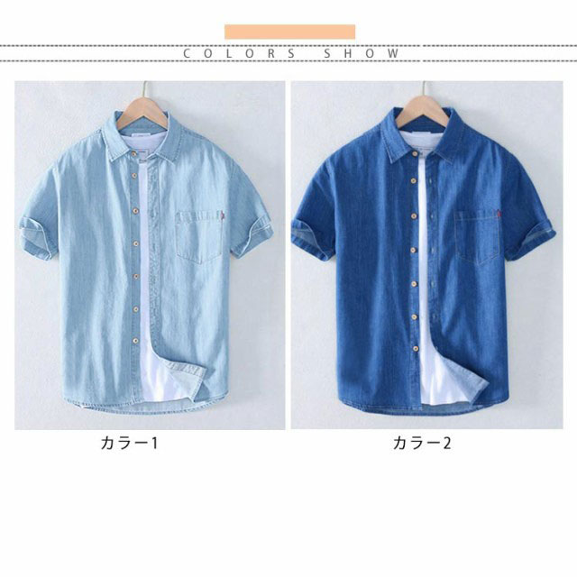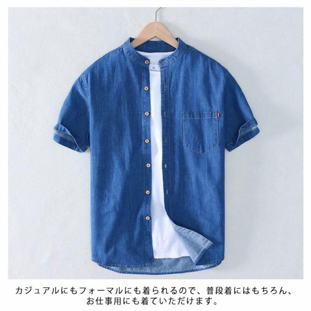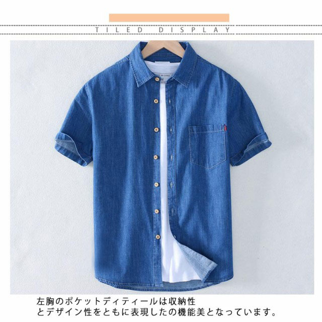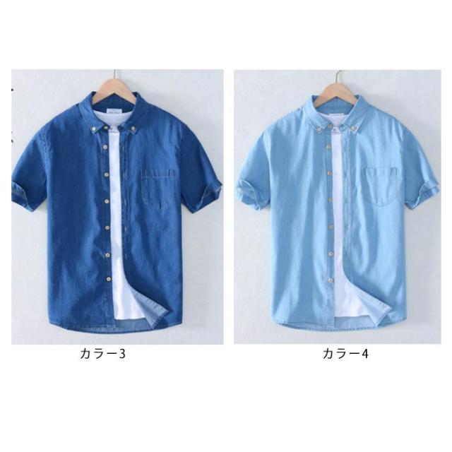 デニムシャツ 半袖 メンズ 半袖シャツ カジュアルシャツ タイトシャツ 着痩せ ゆったり 通勤 通学 夏 メンズファッション 新作