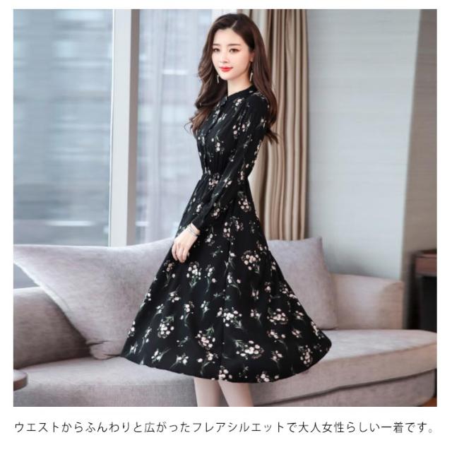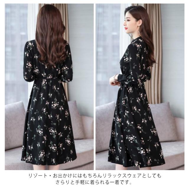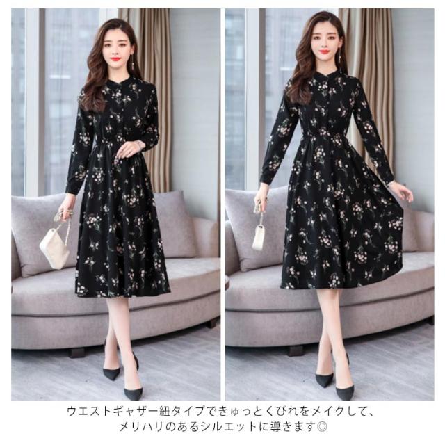 花柄ワンピース ロングシャツワンピース ワンピース 花柄 長袖ワンピース プリントワンピース 膝下丈 ロング丈 シャツワンピ aライン フレア 大きサイズ 春 夏 送料無料