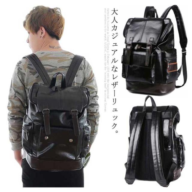フラップリュック レザー リュック メンズ 大容量 リュック 軽量 通学 高校生 ランドセル デザイン レザー フラップ リュックサック バックパック デイパック ボックス型 A4