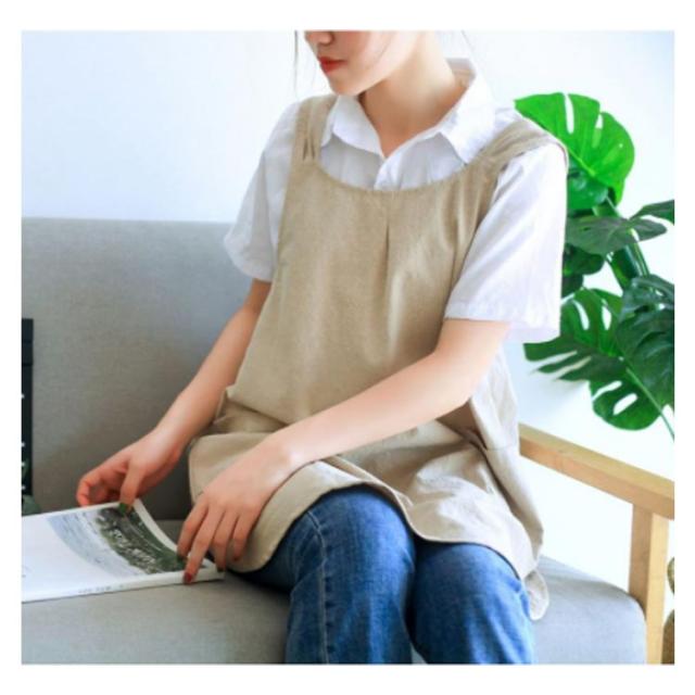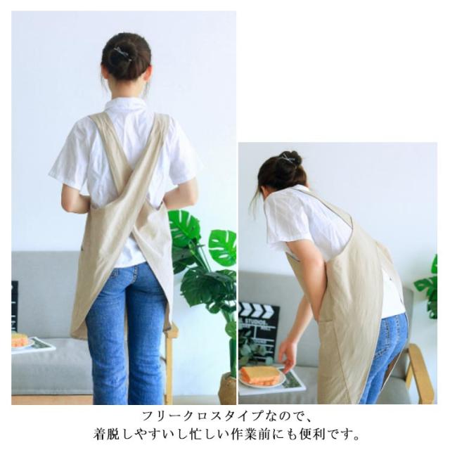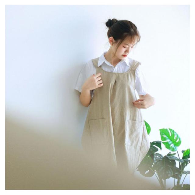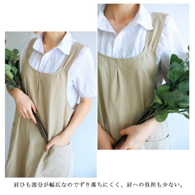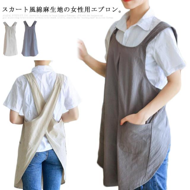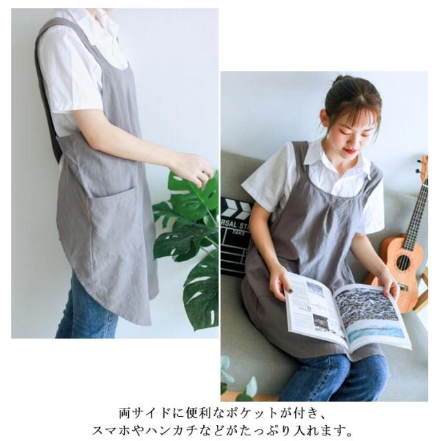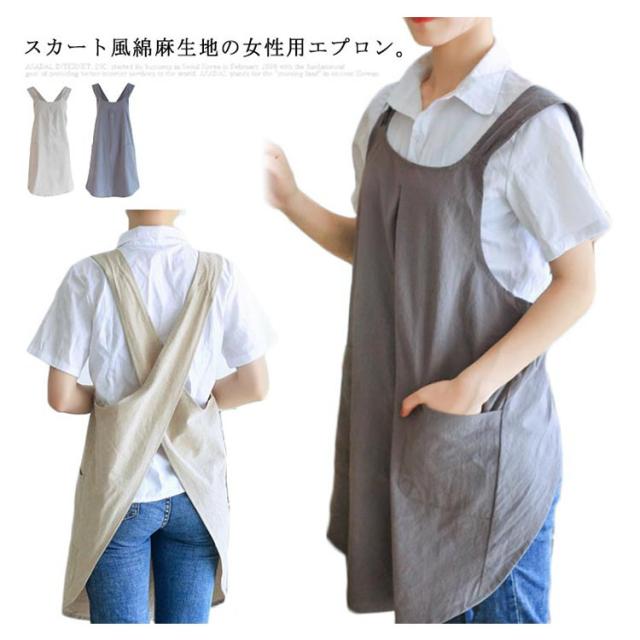 【送料無料】エプロン おしゃれ ワンピース チュニックエプロン 仕事用 ゆったり レディース カフェ 保育士 介護士 美容師 ふんわり ドレス かわいい おしゃれ シンプル ナチュラル 無地 綿麻 北欧