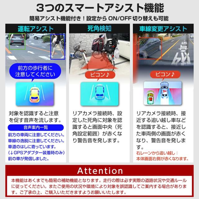必ず直視にて後方の安全確認を行ってください。運転中の事故等の責任は負いかねますのでお客様ご自身で安全運転を心がけていただくようお願いいたします。