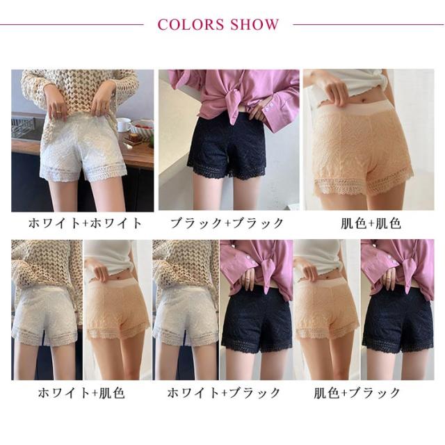 送料無料 ペチパンツ 見せパンツ 2セット 総レース ペチコート レディース インナーパンツ ショートパンツ ショーツ 安全ショーツ 透け 防止 下着 可愛い チラ見せ 柔らかい 薄手 短パン ルームウエア 女性用 婦人用