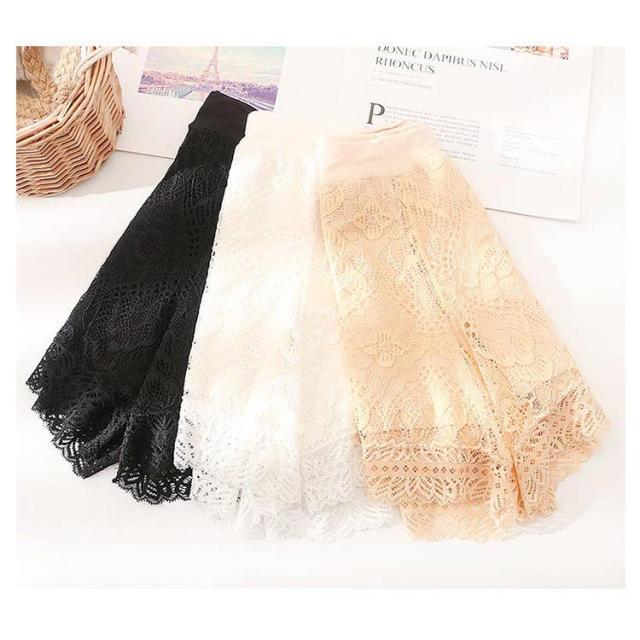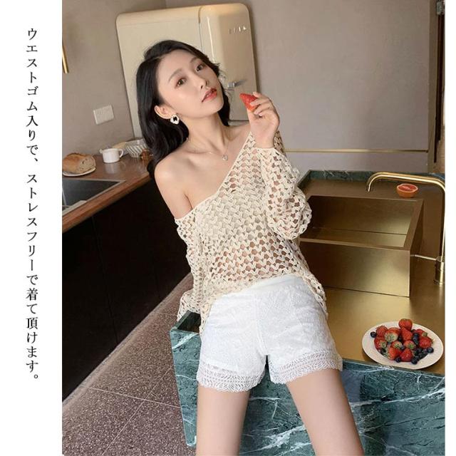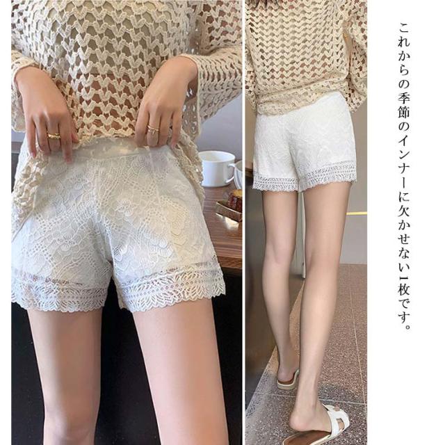 | 違和感がない可愛らしい総レースペチパンツです。 スカートやワンピースなどの下に履いてめくれ防止に ウエストゴム入りで、ストレスフリーで着て頂けます。 これからの季節のインナーに欠かせない1枚です。 | |
