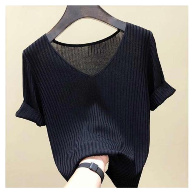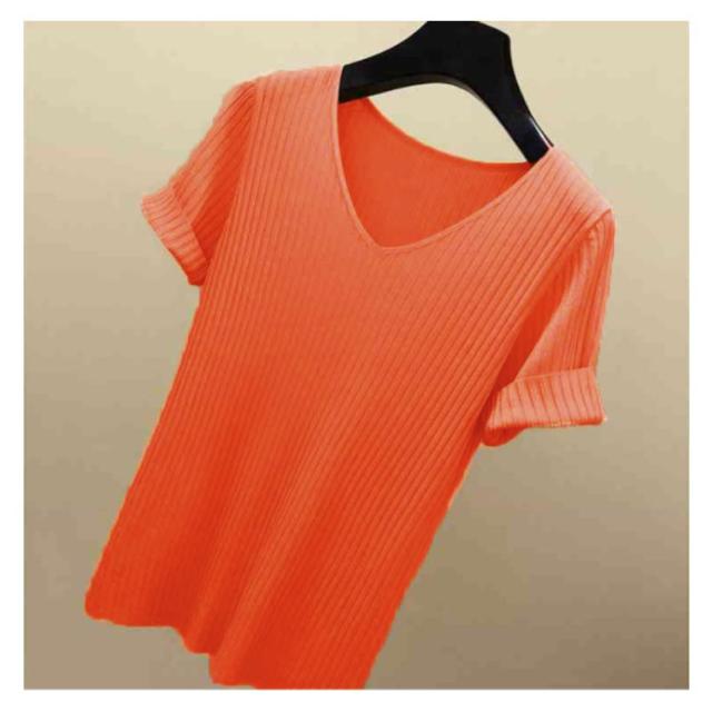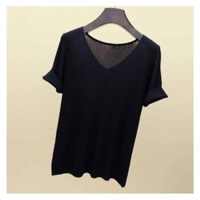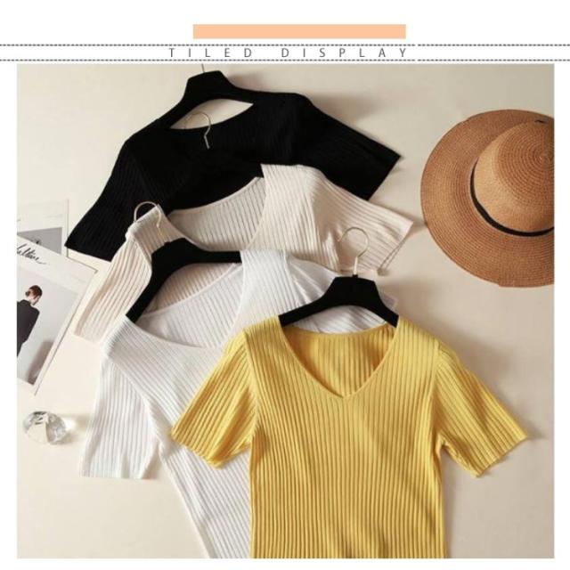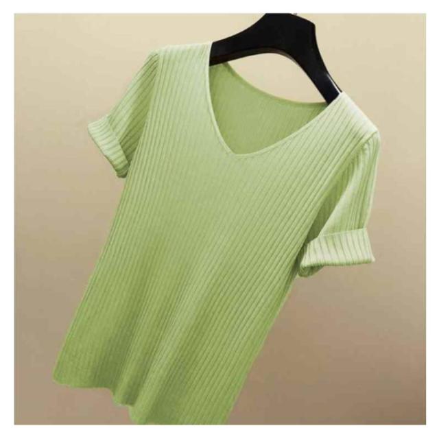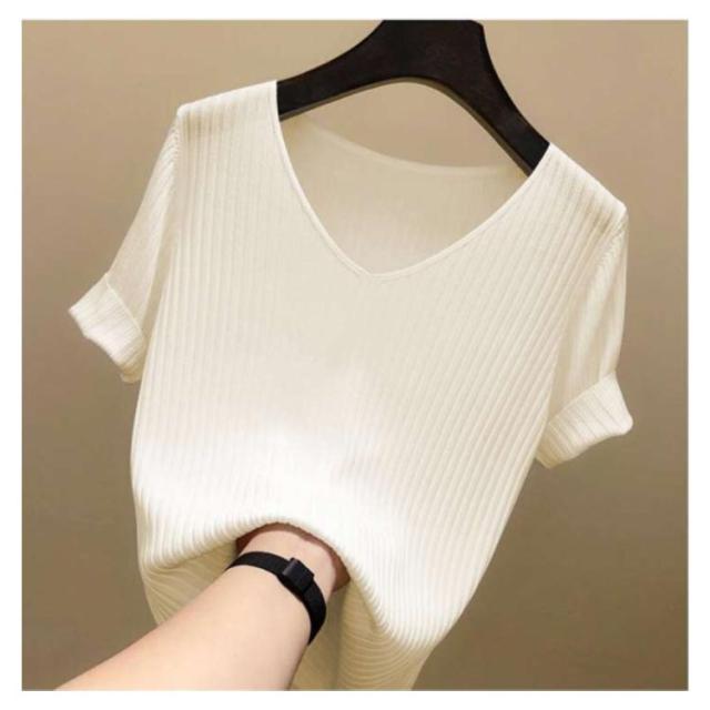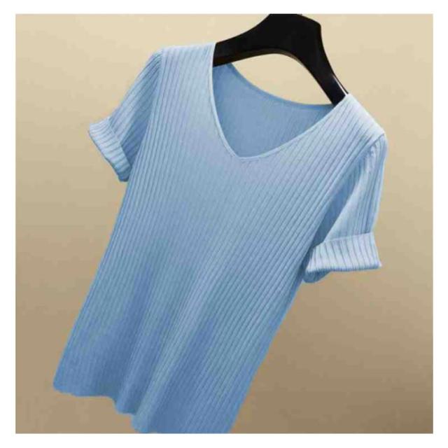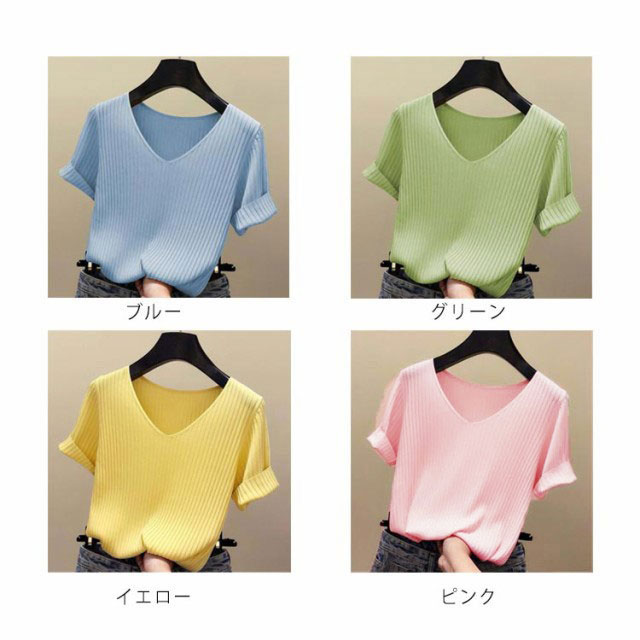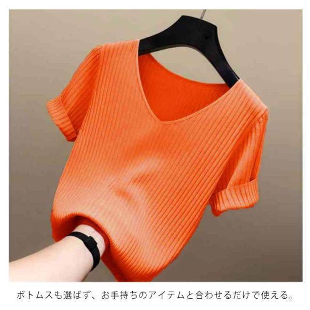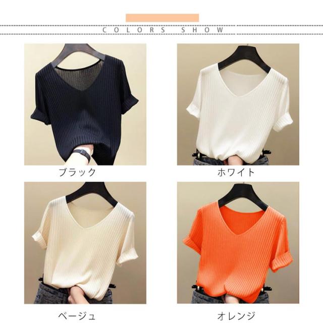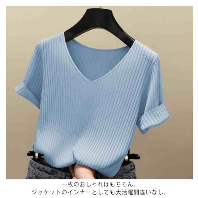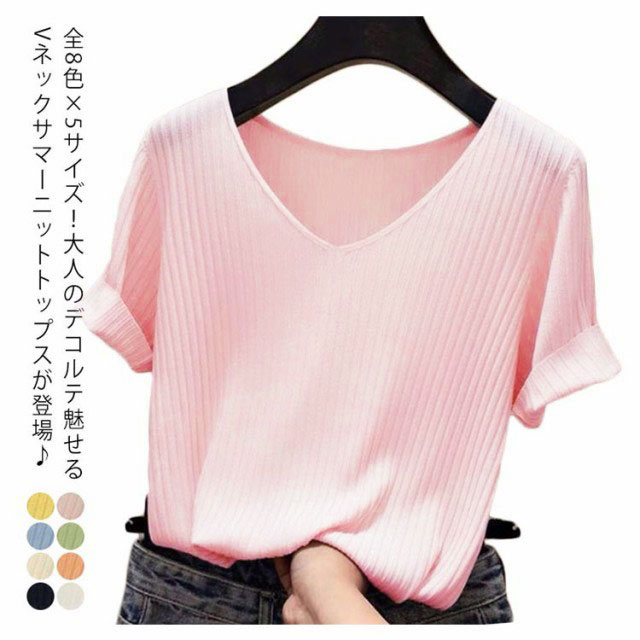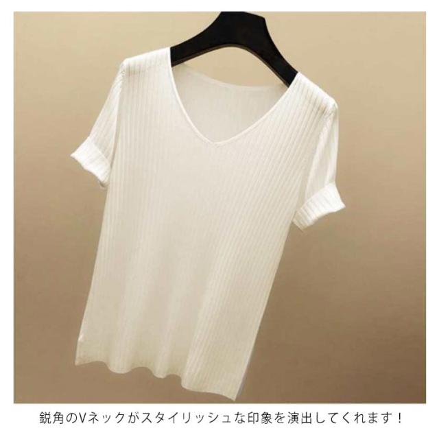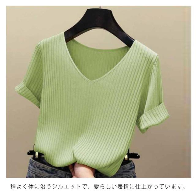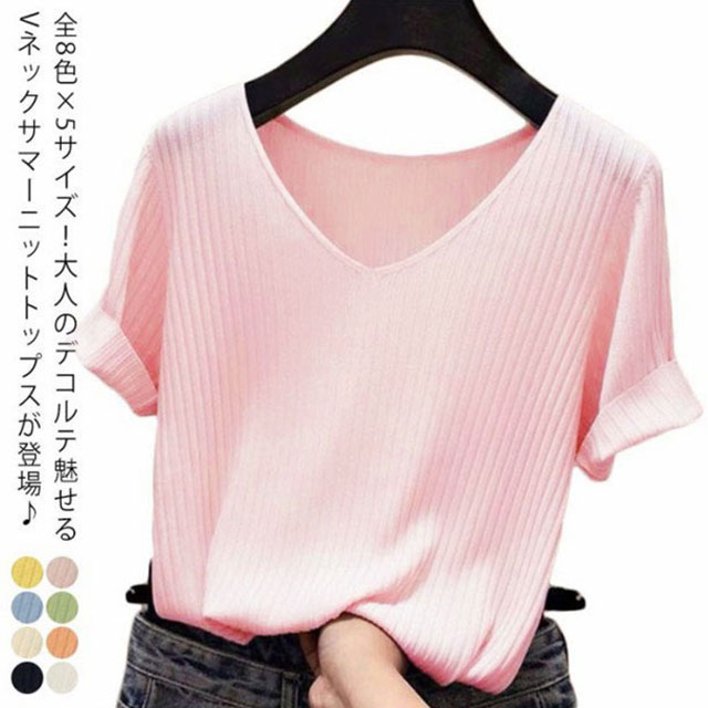 全8色×5サイズ!トップス サマーニット 半袖 レディース 半袖ニット ニットトップス サマー ニット リブ tシャツ Vネック 薄手 シンプル 無地 春夏 おしゃれ 送料無料