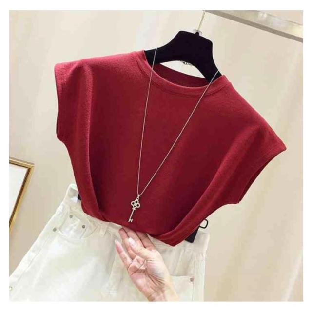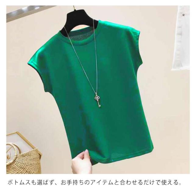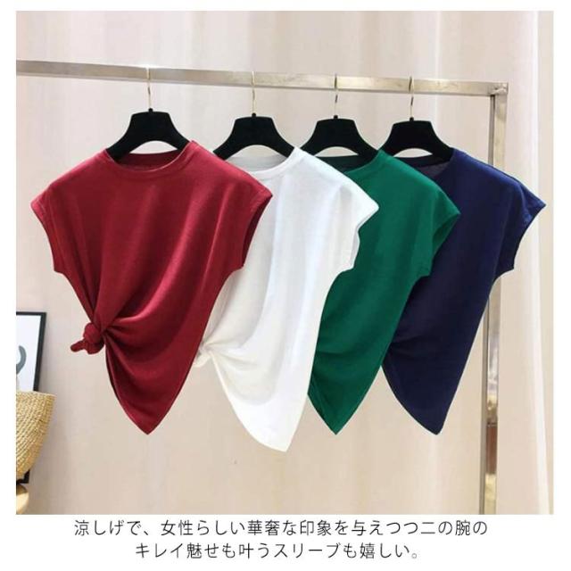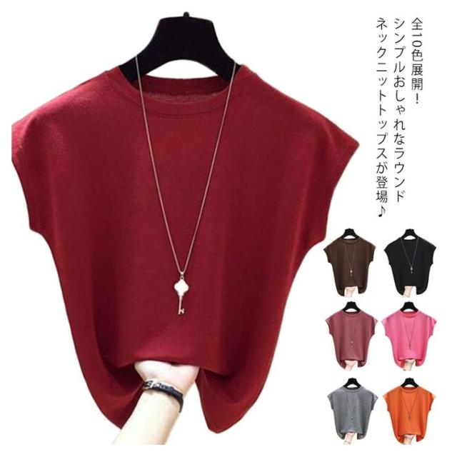 全10色×8サイズ!フレンチスリーブ トップス サマーニット ニットトップス ラウンドネック 半袖ニット フレンチスリーブニット シンプル 無地 春夏 夏 大きサイズ おしゃれ 可愛い 送料無料