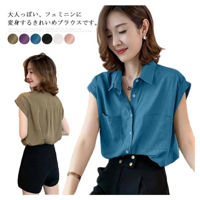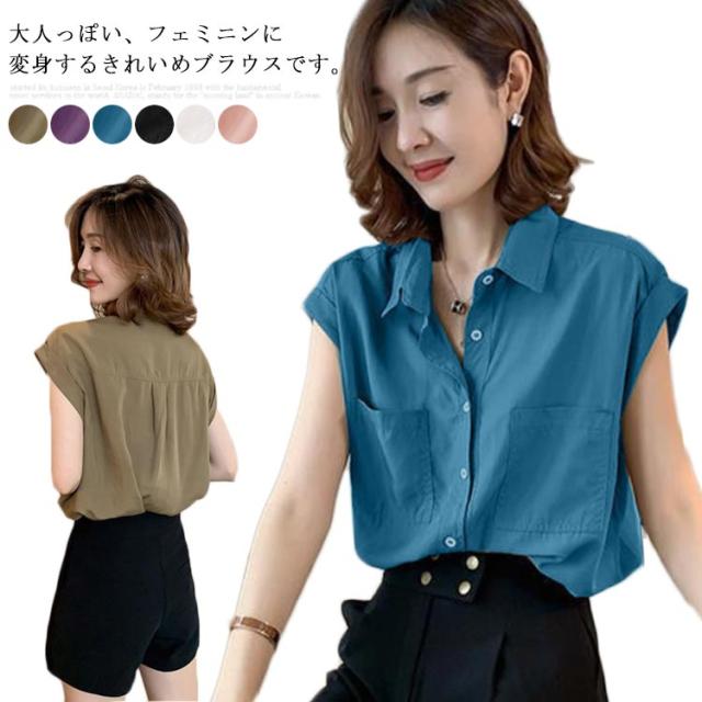 ブラウス レディース きれいめ シャツ 半袖 トップス 無地 大人女子 ゆったり 春夏服 体型カバー 着痩せ 通勤 シンプル 大きいサイズ フェミニン感 カジュアル
