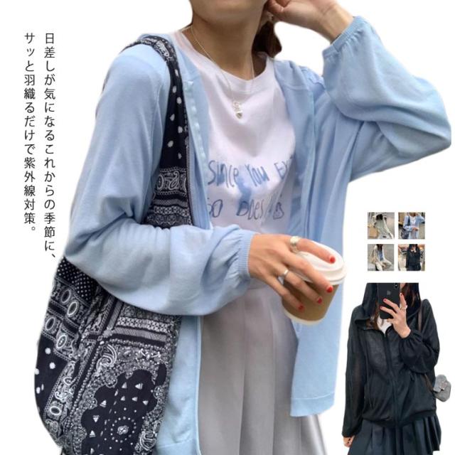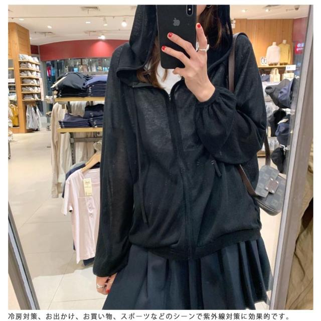 送料無料 UVカット パーカー 紫外線対策 UVパーカー レディース カーディガン 薄手 透け感 羽織り トップス 日よけ ゆったり 涼しく UV対策 吸汗 速乾 紫外線防止 日焼け対策 冷房対策 お洒落 かわいい カジュアル 無地 春 夏 夏服