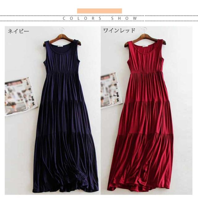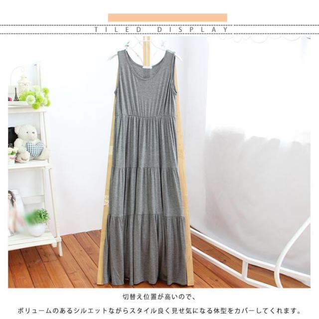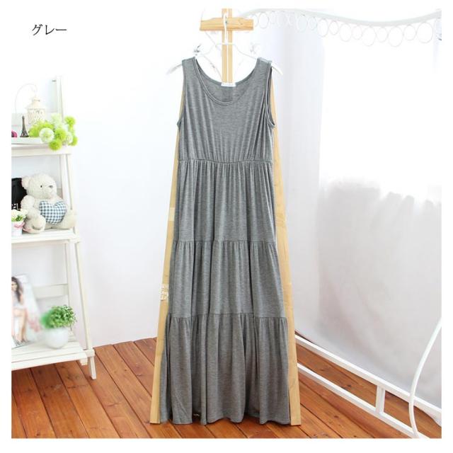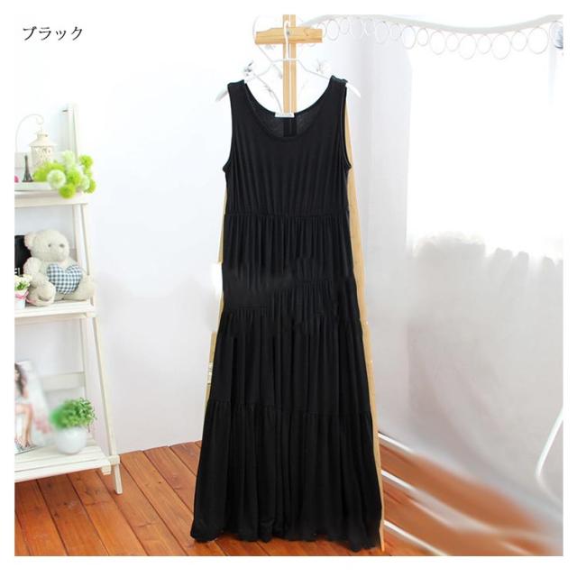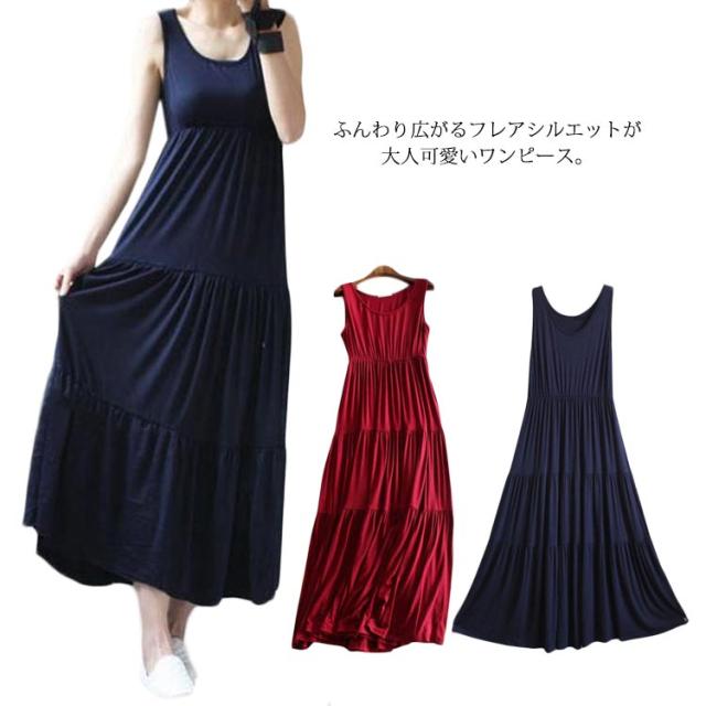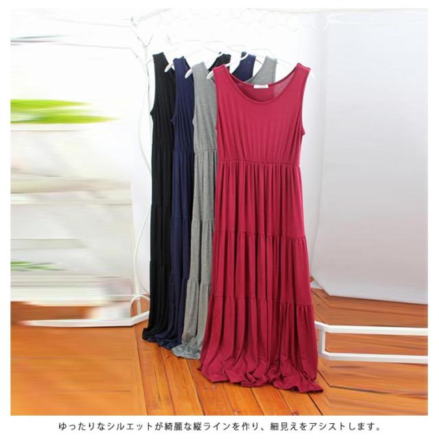 送料無料 ノースリーブ ワンピース レディース フレアスカート ゆったり ルームウェア 部屋着 無地 ストレッチ ロングワンピース マキシ丈 体型カバー Aライン ふんわり カジュアル ワンピ 重ね着 レイヤード