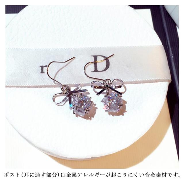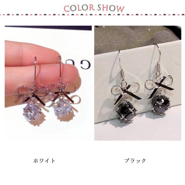 送料無料 ピアス レディース 金属アレルギー ロングピアス 揺れる ジルコン 小さい 石ピアス ジルコン アレルギーフック アレルギー対応 ホワイト ブラック 大人 可愛い