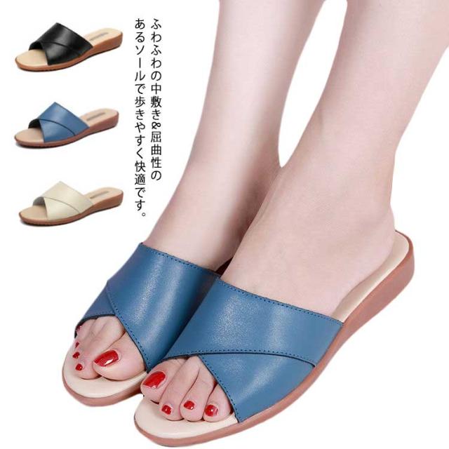 サンダル レディース つっかけ 春夏 厚底 フラット シンプル スリッパ おしゃれ PU 22.5 23.0 23.5 24.0 24.5 ぺたんこ