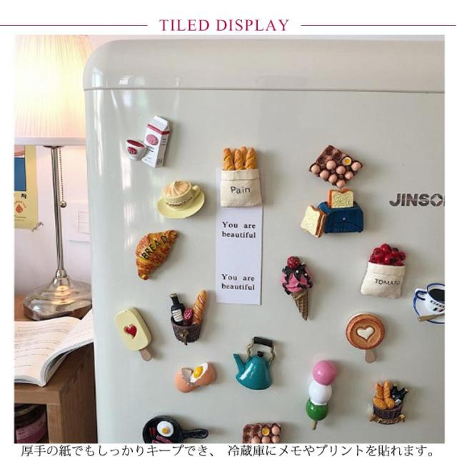 | かわいい食品デザインの冷蔵庫用マグネット。 厚手の紙でもしっかりキープでき、冷蔵庫にメモやプリントを貼れます。 会社のホワイトボードに書類を留めるにもおすすめします。 かわいい20種類の中から選んでいただけます。 自宅用はもちろん、プレゼントやおみやげにも最適! | |