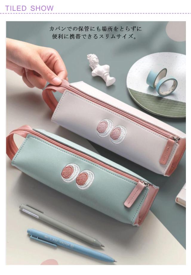 | 小さくても存在感があるペンケースです。 カバンでの保管にも場所をとらずに便利に携帯できるスリムサイズ。 インク等汚れがついた時は水拭きも出来て手入れがしやすい。 カジュアル且つ面白さにあふれるデザインが魅力。 | |