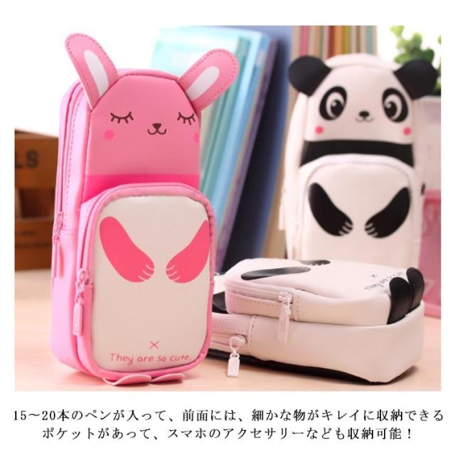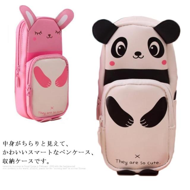 ペンケース 文房具収納 化粧ポーチ 筆箱 大容量 ウサギ パンダ 男の子 女の子 ユニセックス かわいい おしゃれ 小学校 通学