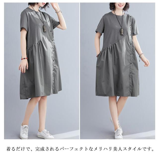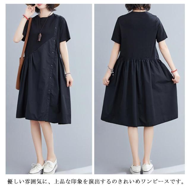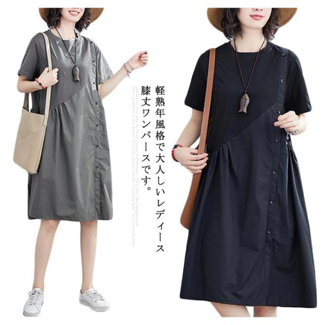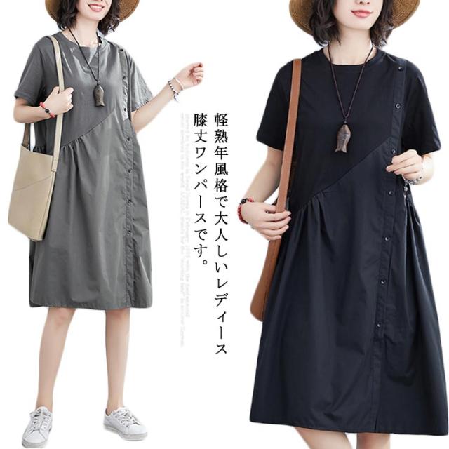 フレアワンピース 半袖 クルーネック 膝丈 ロングワンピース レディース 夏 半袖 膝丈 Aラインワンピース ドレス フォーマル 通勤 着痩せ 上品 きれいめ 新作