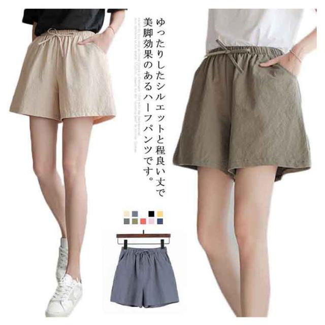 ショートパンツ ハーフパンツ ゴルフウェア レディース 夏 綿麻 短パン ランニング ランパン ヨガ 大きいサイズ カジュアルウエア 柔らかい 通気性 伸縮性 吸汗 速乾 スポーツ