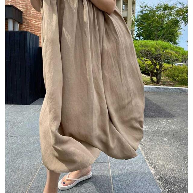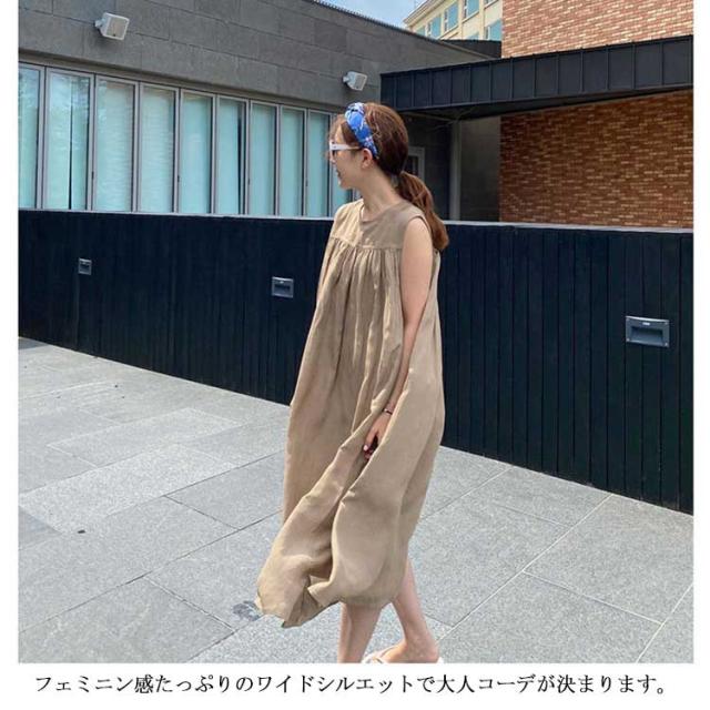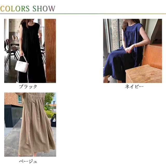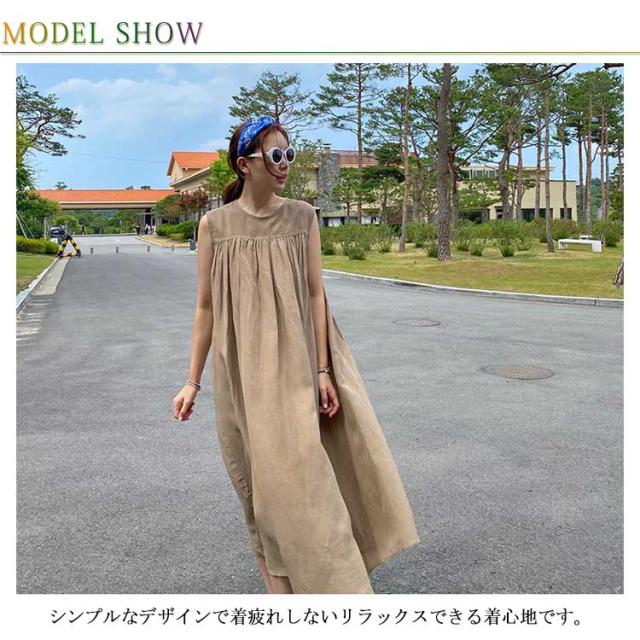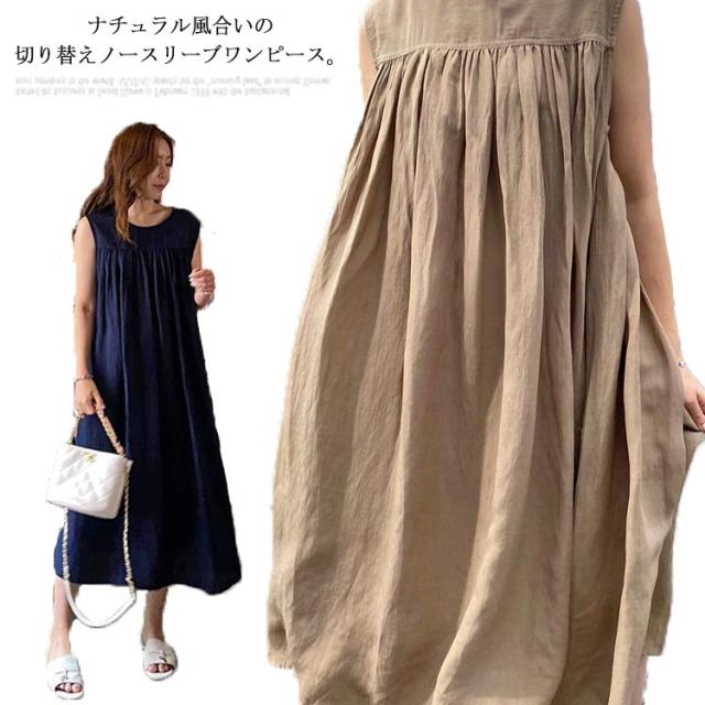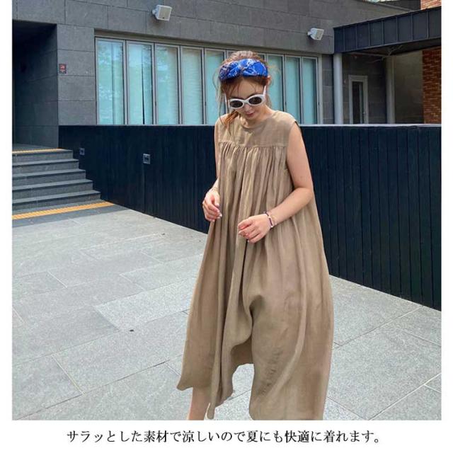 【送料無料】ノースリーブ ワンピース 大きいサイズ ゆったり 体型カバー 着痩せ リゾートワンピ レディース Aラインワンピ ミモレ丈 切り替え ギャザー ロングワンピース 夏 カジュアル 森ガール ワンピース 無地 ナチュラル