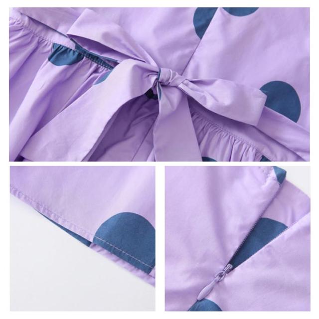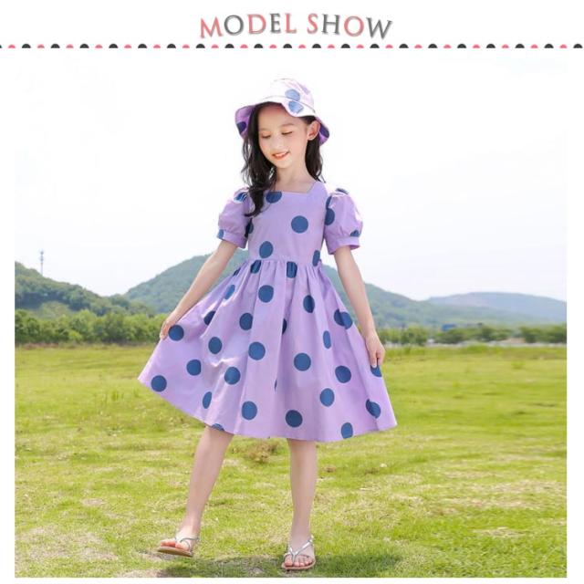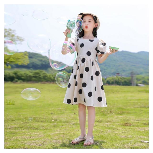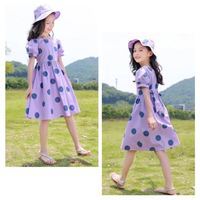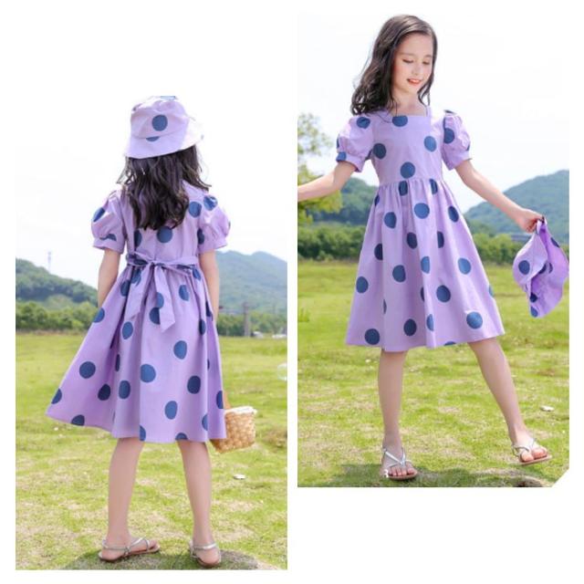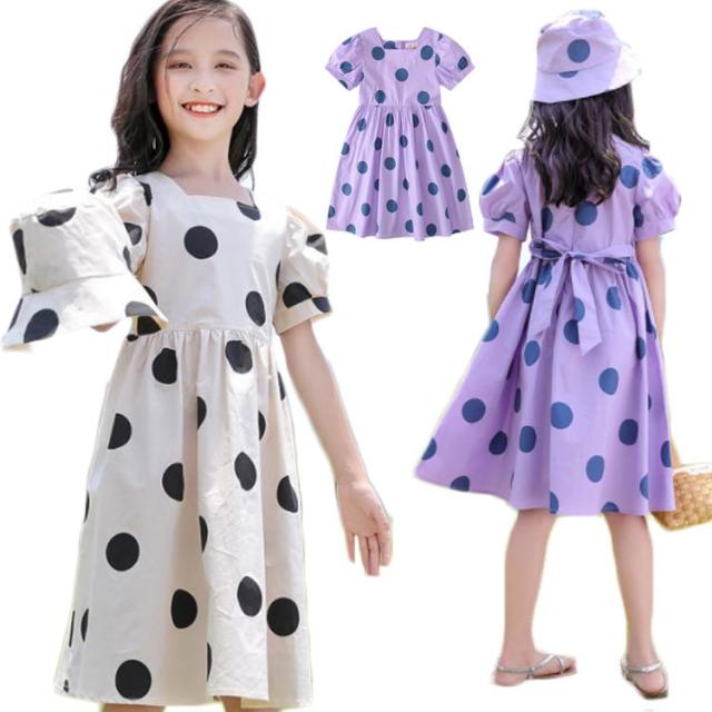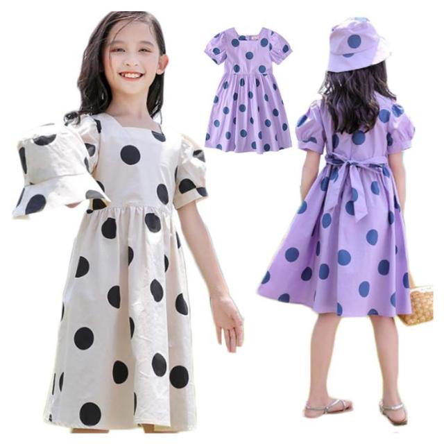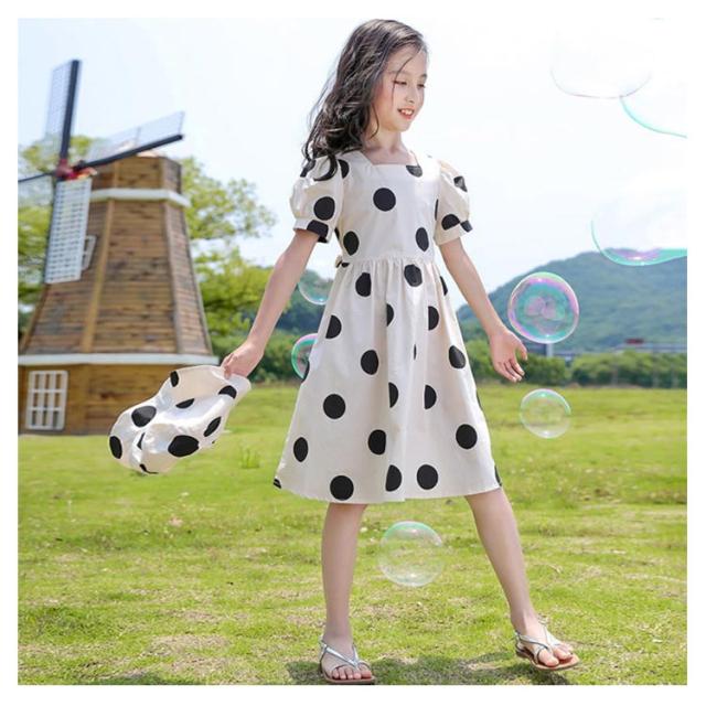 半袖 フォーマル キッズ ワンピース 夏 ドット柄 女の子 こども服 ワンピ 夏 韓国服 ドット柄 半袖 Aライン フレア リボン付き 送料無料 水玉柄 膝丈上
