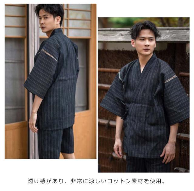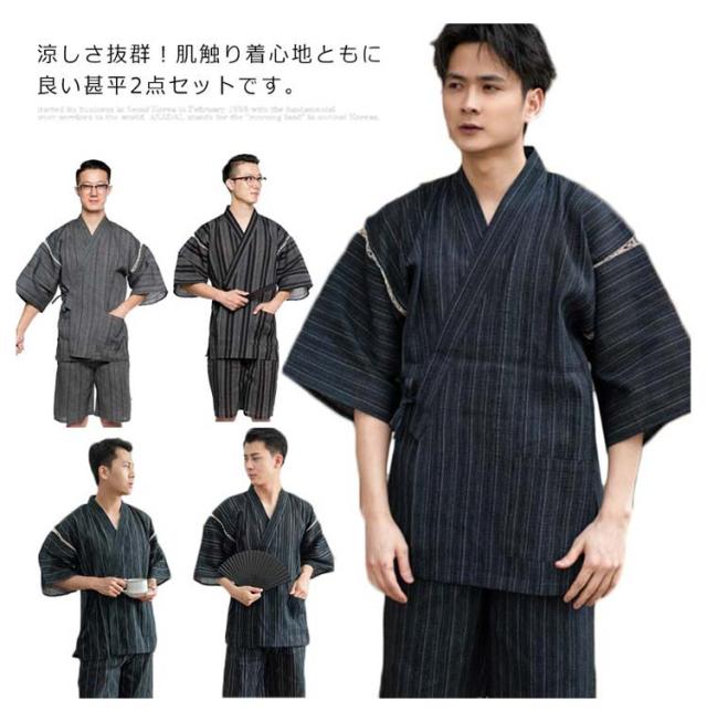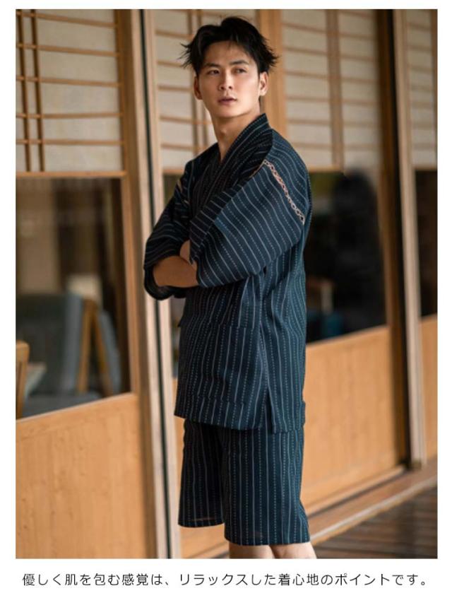 父の日 甚平 メンズ じんべい ルームウエア 部屋着 パジャマ 上下セット おしゃれ セット パジャマ 寝巻 和柄 綿 コットン 半袖 ハーフパンツ 短パン ショートパンツ 祭り 大きいサイズ ギフト プレゼント ストライプ柄 送料無料