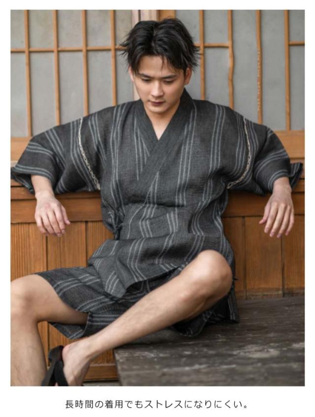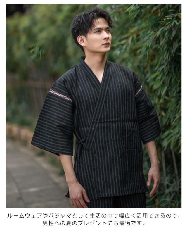 | 涼しさ抜群!肌触り着心地ともに良い甚平2点セットです。 透け感があり、非常に涼しいコットン素材を使用。 優しく肌を包む感覚は、リラックスした着心地のポイントです。 長時間の着用でもストレスになりにくい。 ルームウェアやパジャマとして生活の中で幅広く活用できるので、男性への夏のプレゼントにも最適です。 | |