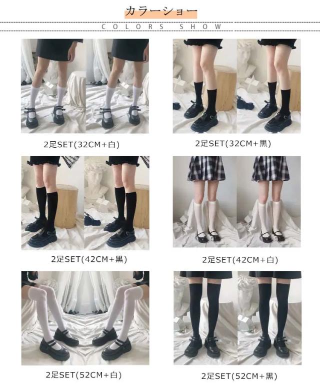 靴下 ソックス ハイソックス レディース くつ下 薄手 ストッキング スクールソックス ひざ下 ソックス ひざ上 制服 JK 白 黒 2組セット 女子高生 JKコスプレ 送料無料 衣装 学生 高校生 学生服 小物 小道具 ギャル レッグウェア 通学 女子