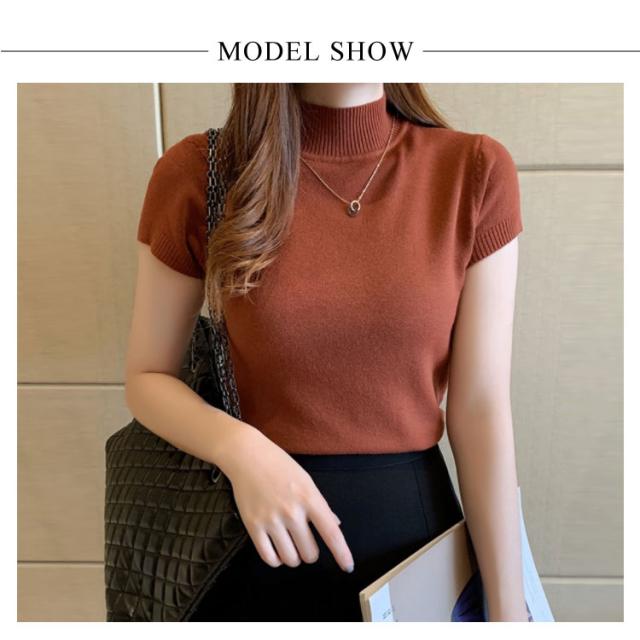 | 着痩せして見せるハイネック半袖リブニット。 首のラインに馴染むハーフハイネック設計。 肌触り良く、柔らかな生地感が魅力的。 豊富な9色展開となり、色違いで揃えるのもお勧めです。 | |