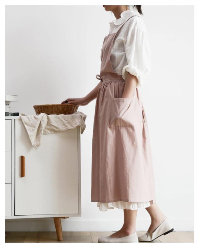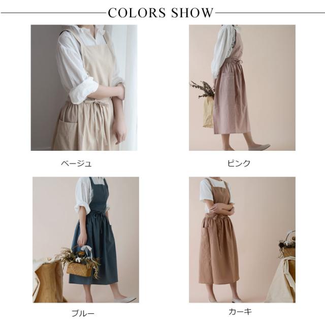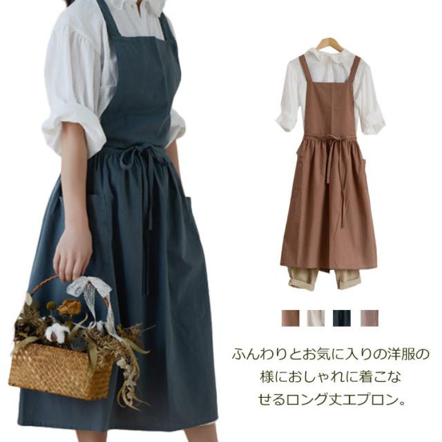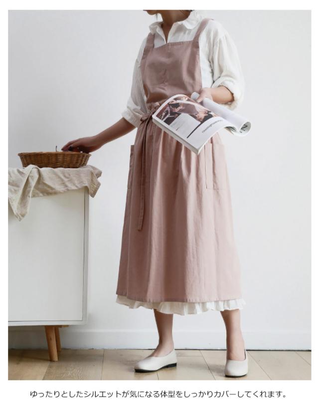 送料無料 エプロン 綿麻 リネン ナチュラル ワンピース おしゃれ コットンリネン 楽ちん 着脱かんたん ロング 背付き かわいい キッチン 家事 カフェ 保育士 料理人 スーパー用 花屋 介護士 母の日 プレゼント ギフト 贈り物