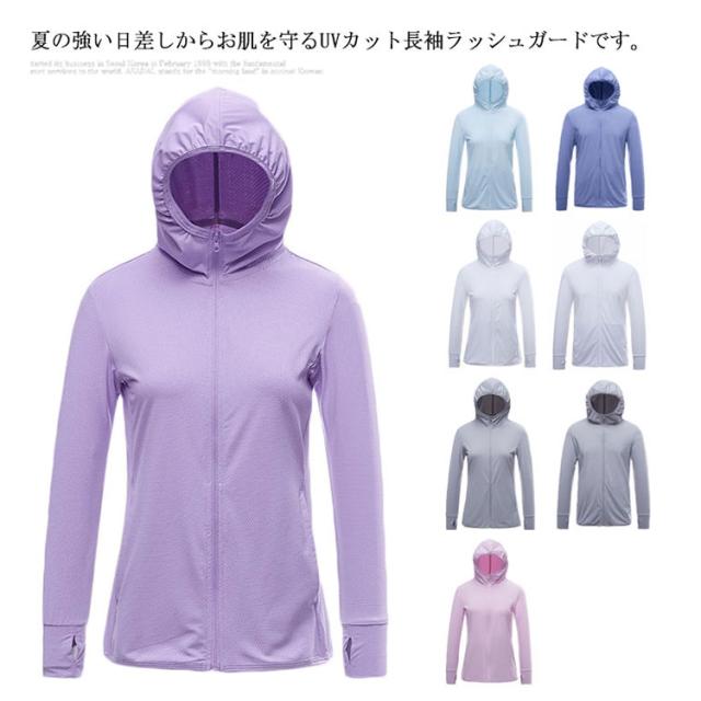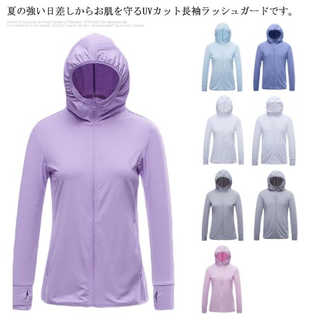 ラッシュガード レディース パーカー メンズ 水着用 長袖 体型カバー UVカット 紫外線対策 接触冷感 ひんやり 無地 アウトドア ビーチ 日焼け防止 フード付き 通気性 送料無料