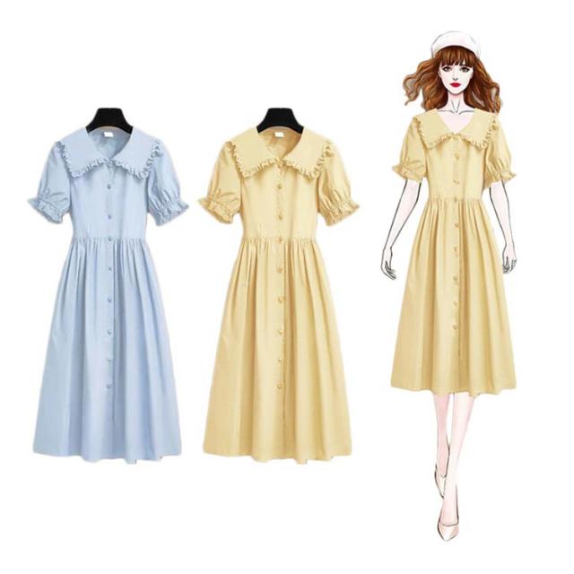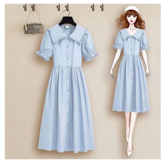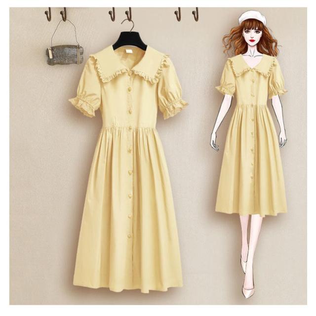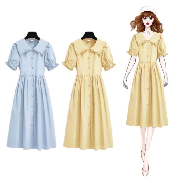 レース ワンピース ロング 半袖 レディース 夏 ミディアム丈 送料無料 大きいサイズ フォーマル 韓国服 ゆったり 海軍 折襟 Aライン ロングワンピース 着痩せ おでかけ 無地