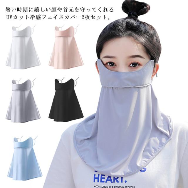 送料無料2枚セット 冷感 フェイスカバー UVカット マスク フェイスマスク 冷感マスク 洗える 接触冷感 クールマスク ワイド めがね くもらない 息苦しくない 紫外線対策 日よけ 日差し対策 快適 涼しい UPF50+ シンプル 美肌 おしゃれ 夏物