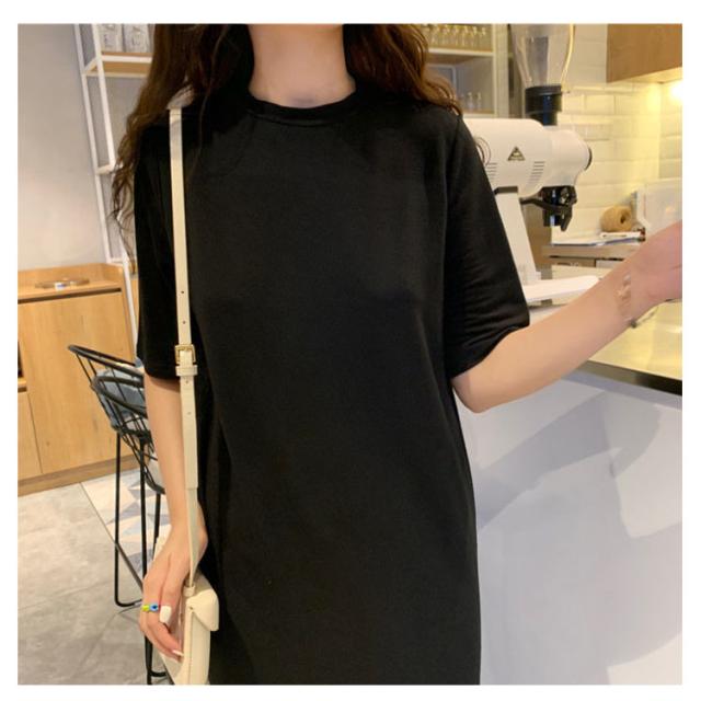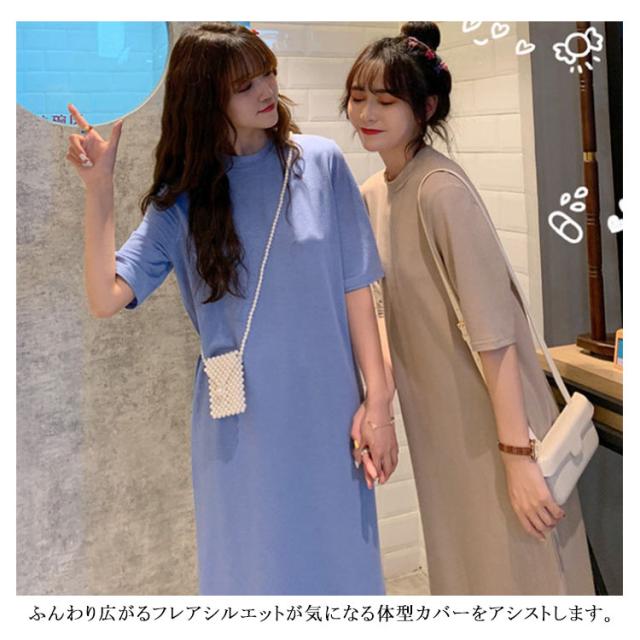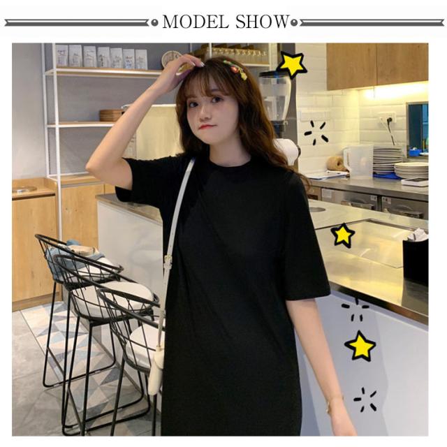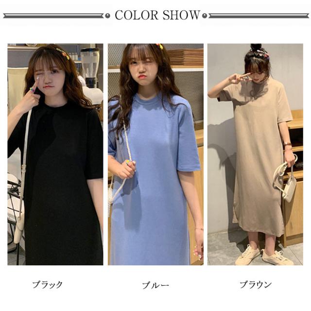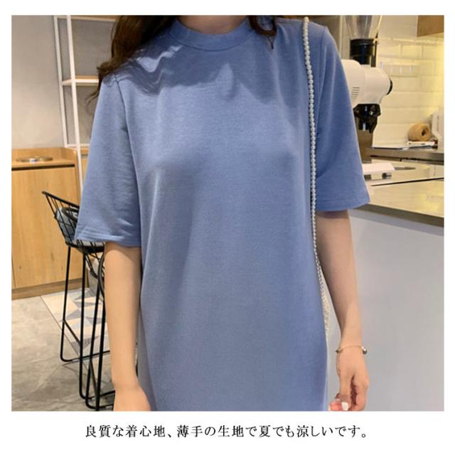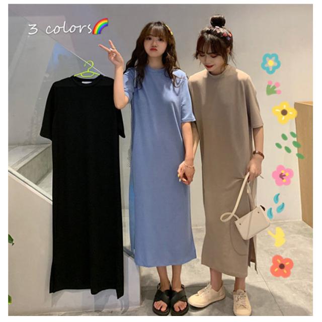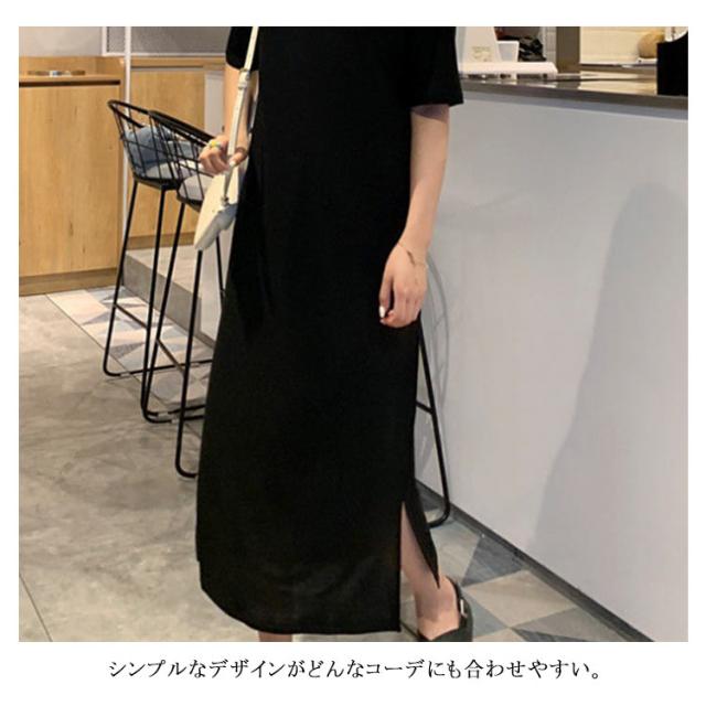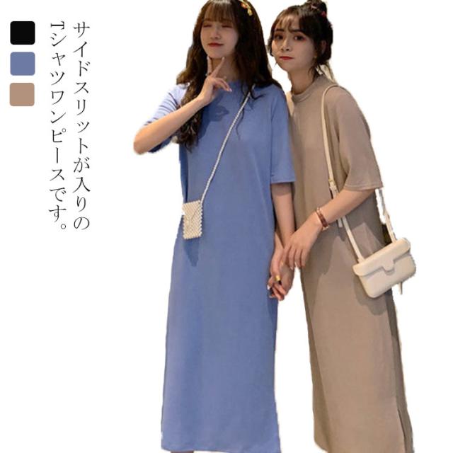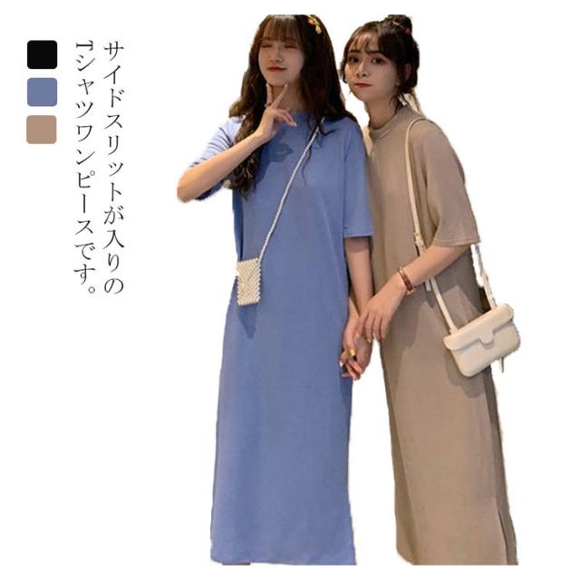 送料無料 Tシャツワンピース サイドスリット ワンピース ビッグTシャツ レディース トップス 半袖 大きいサイズ ロングワンピース 無地 春 夏 秋