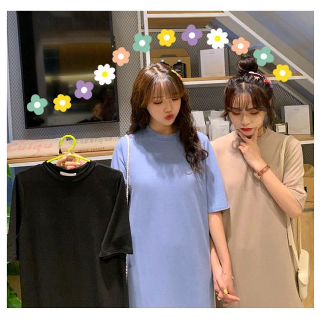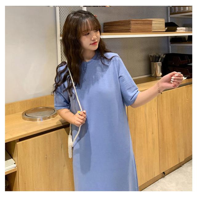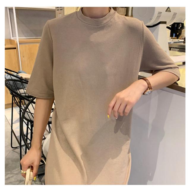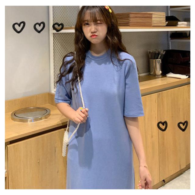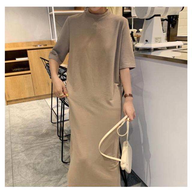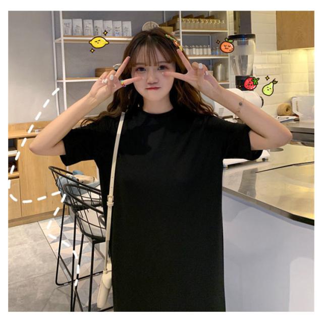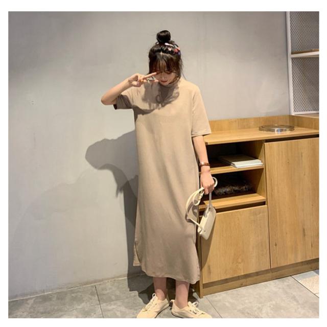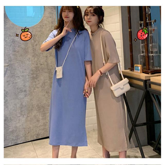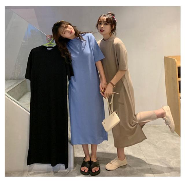 送料無料 Tシャツワンピース サイドスリット ワンピース ビッグTシャツ レディース トップス 半袖 大きいサイズ ロングワンピース 無地 春 夏 秋