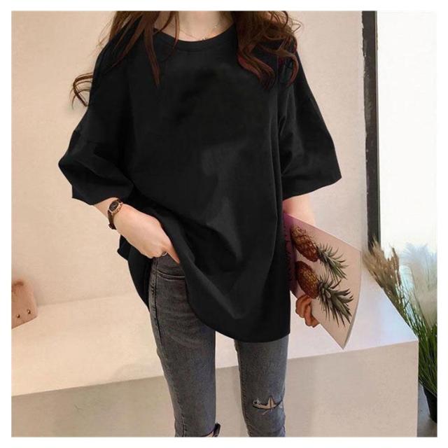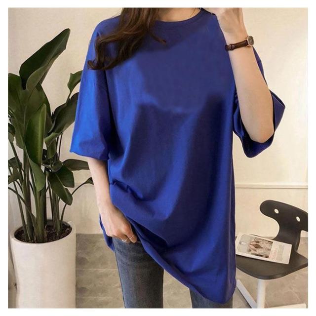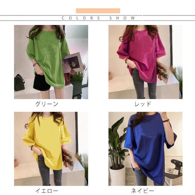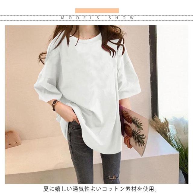 ロングTシャツ 半袖 Tシャツ レディース チュニック トップス 無地 コットン カットソー ラウンドネック 体型カバー ビックシルエット 大きいサイズ オーバーサイズ ゆったり 可愛い カジュアル きれいめ おしゃれ 春夏秋冬 送料無料