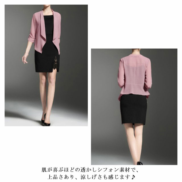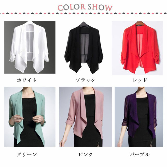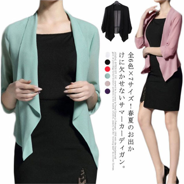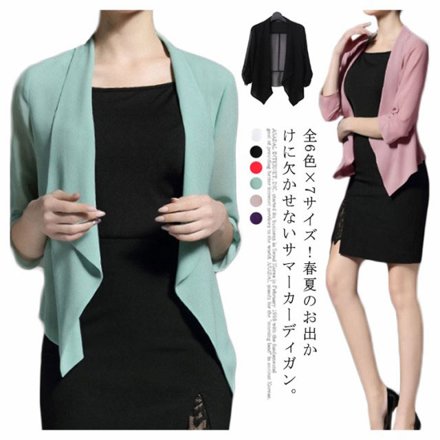全6色×7サイズ!サマーカーディガン サマージャケット カーディガン サマー シフォンカーディガン シフォン 羽織り 七分袖 シンプル 無地 大きサイズ 春夏 日焼け防止 オフィス 冷房対策 ショート丈 送料無料