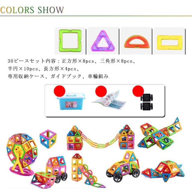 30PCS マグネットブロック 磁石 ブロック パズル マグネット おもちゃ 知育 ブロック 積み木 3D 立体パズル 磁石ブロック 磁気 おもちゃ 知育玩具 正方形 長方形 子供 おもちゃ 男の子 女の子 誕生日 入園 ギフト 出産祝い プレゼント 収納ケース付き