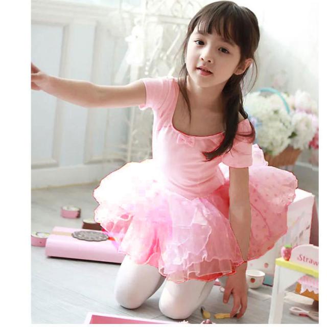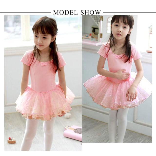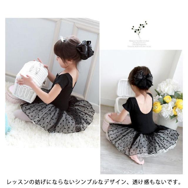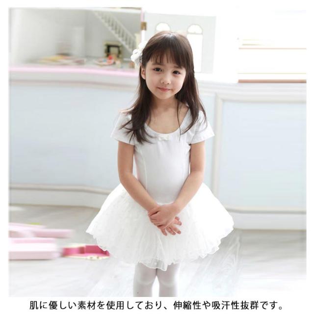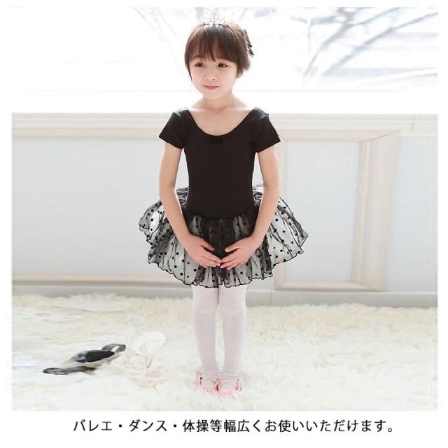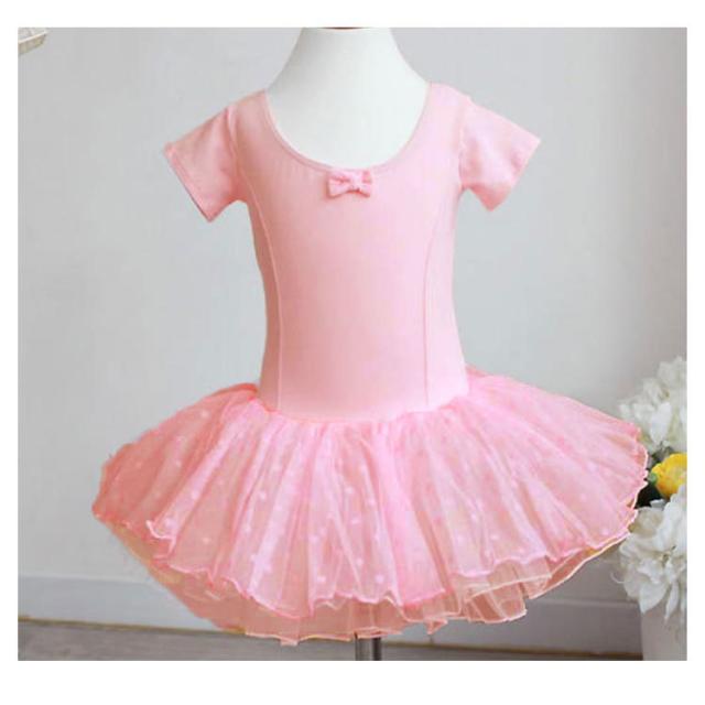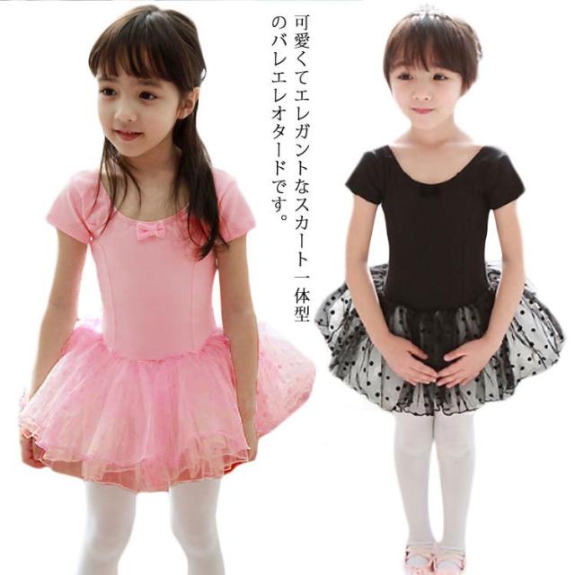 バレエレオタード 半袖 子供 キッズ スカート付き ジュニア バレエ レオタード 練習着 レッスン着 ダンス 新体操 体操服 可愛い 子ども こども バレエ用品 リボン 水玉