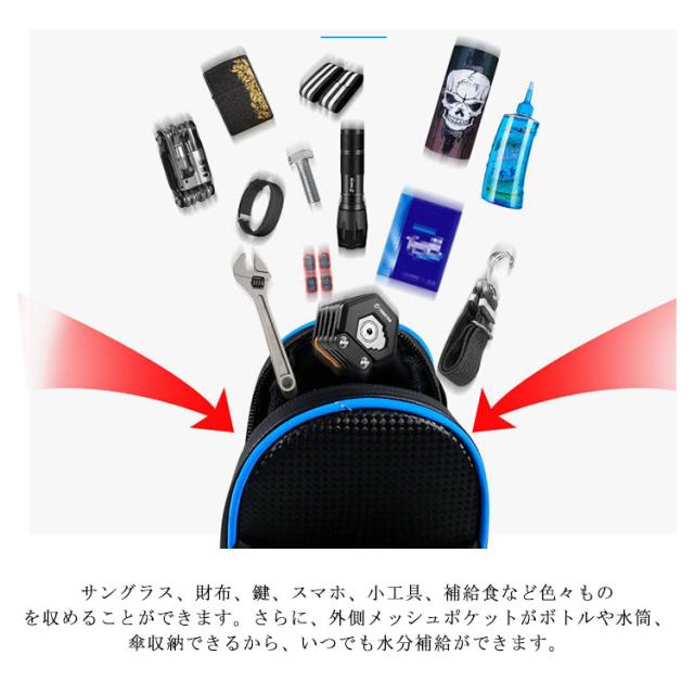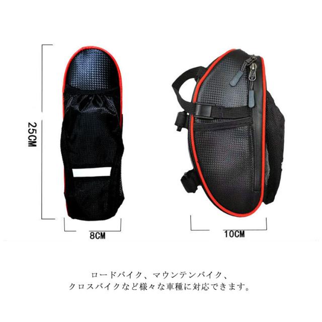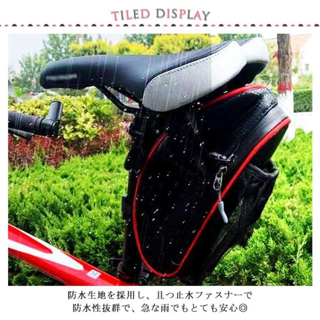 ボトルや傘収納可能 サドルバッグ 防水 自転車バッグ ドリンクホルダー シートバッグ メッシュポケット 大容量 水筒収納 反射テープ付き ロードバイク マウンテンバイク クロスバイク カバン リアバッグ