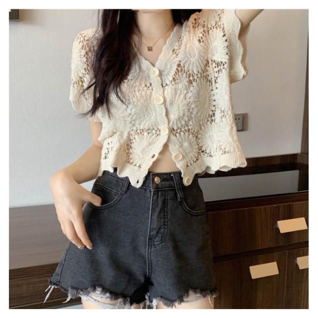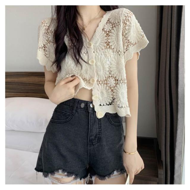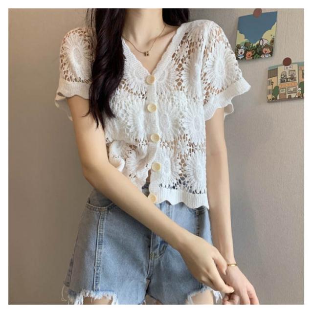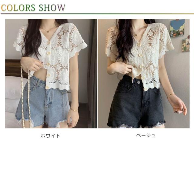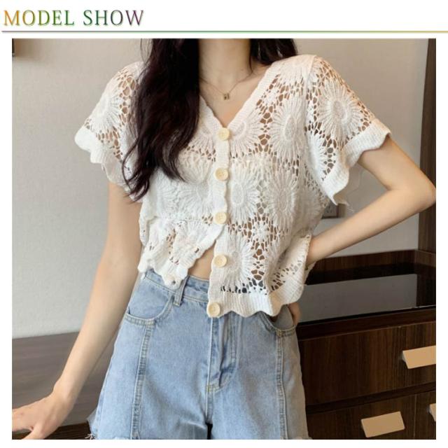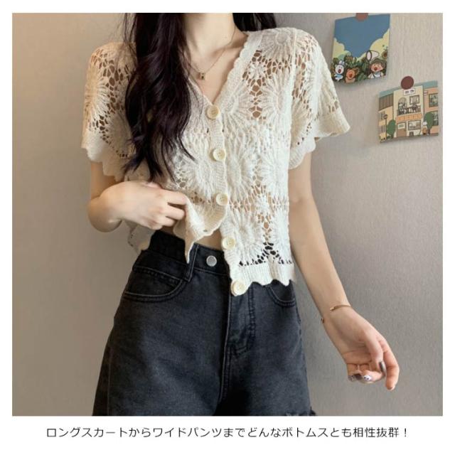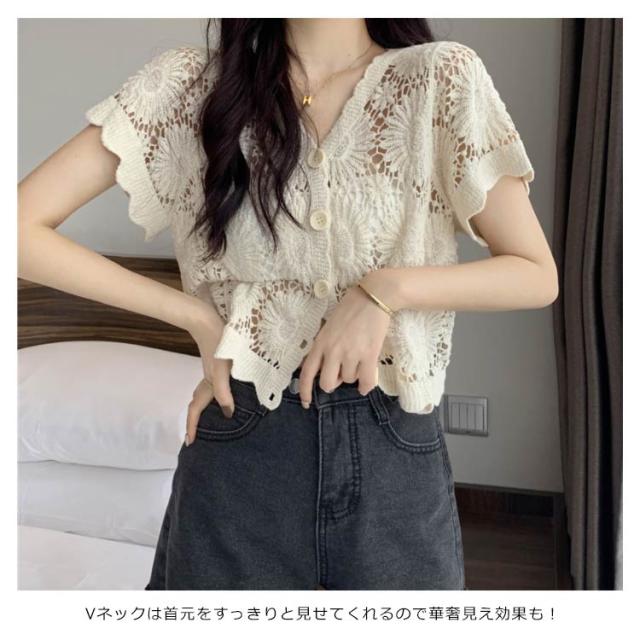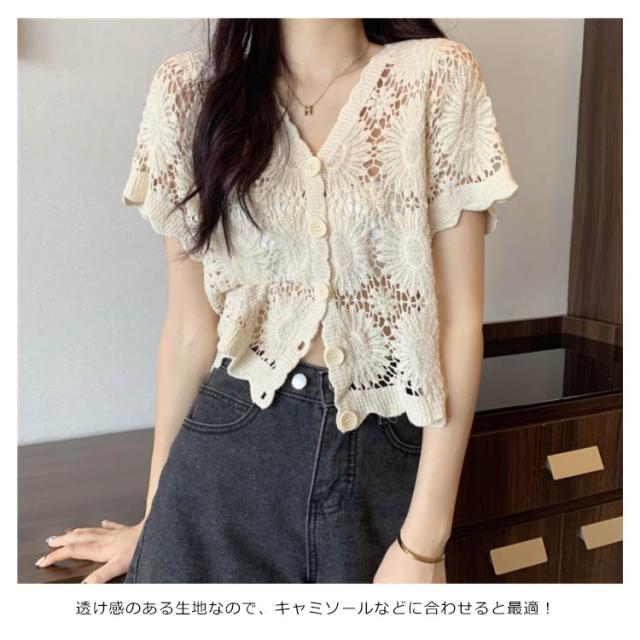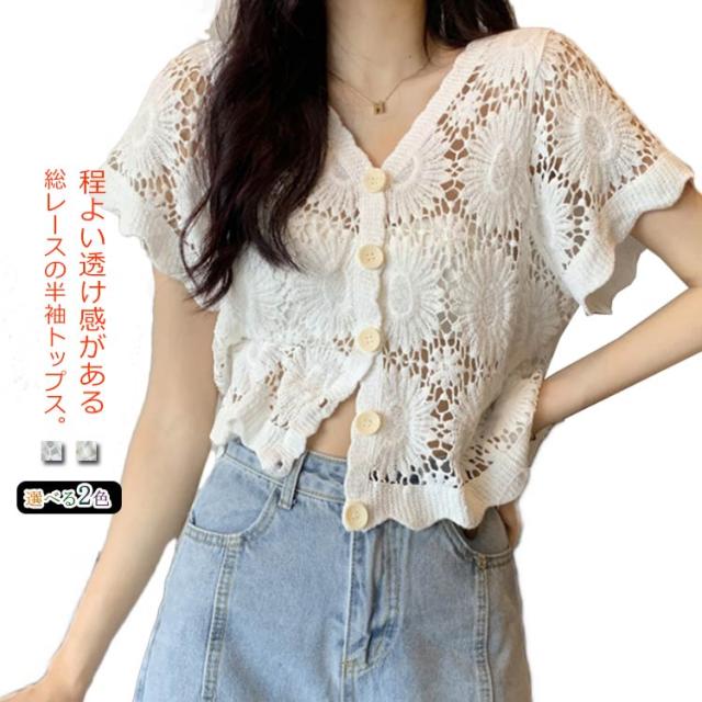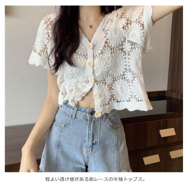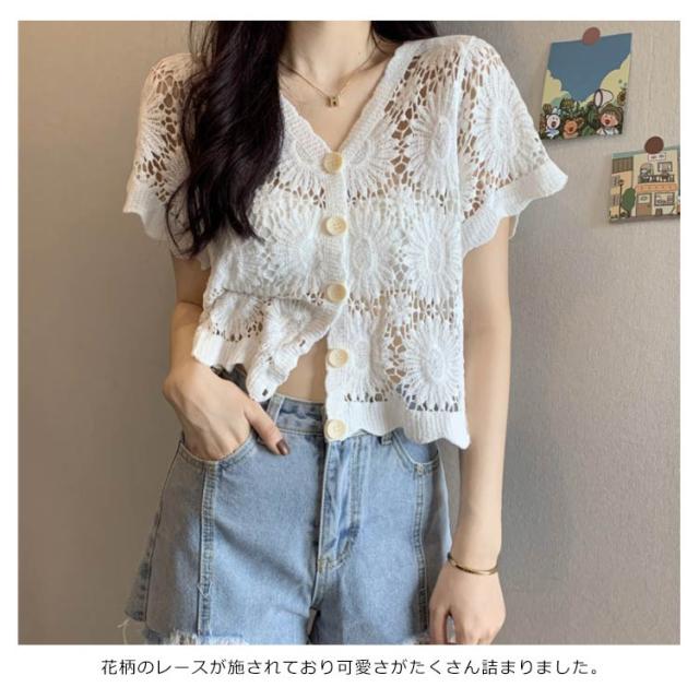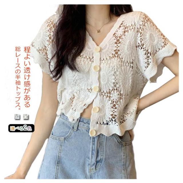 【送料無料】花柄レース刺繍カットソー サマーニット カーディガン レディース レースTシャツ ブラウス トップス 春夏 洗える レディースファッション トップス 羽織り カットソー レース レディース 半袖 トップス ブラウスシャツ