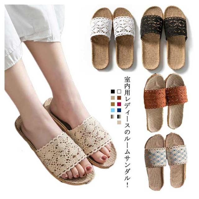 【送料無料】ルームシューズ 夏用 室内 スリッパ レース リネン 室内履き サンダル 夏 レディース ベランダ サンダル 麻 おしゃれ 洗える 春用 夏用 サンダル 涼しい 滑り止め 来客用 自宅用