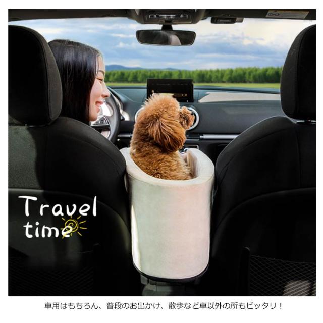 | ペットと一緒に景色を見るながらドライブを楽しめる。 クッション性よいの綿がたっぶり詰まっているのでふっかふか、揺れが気になる車内でも居心地抜群! 車の座席を占めらないコンパクトサイズ。 車用はもちろん、普段のお出かけ、散歩など車以外の所もピッタリ! | |