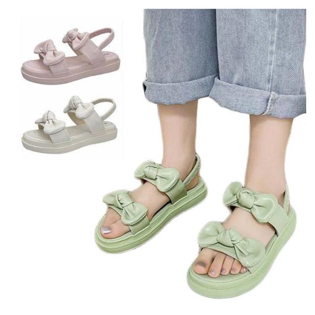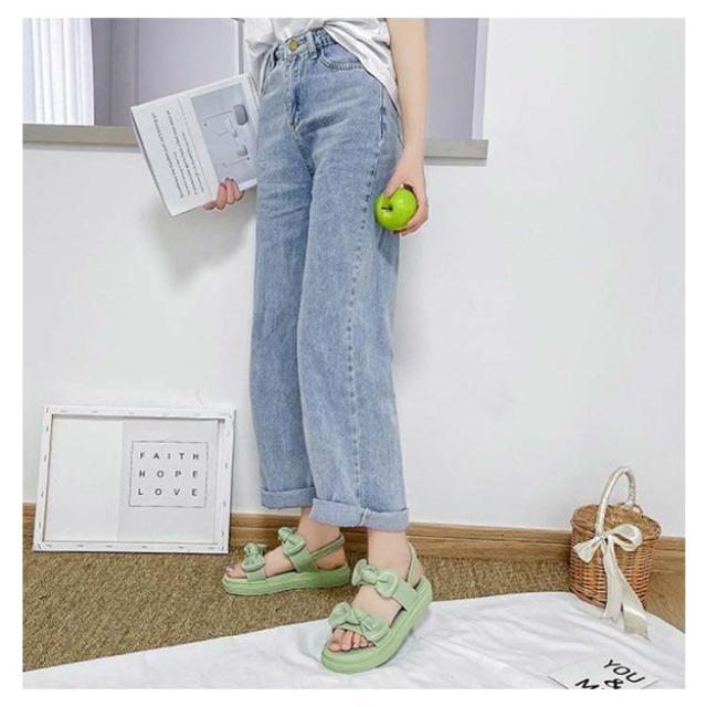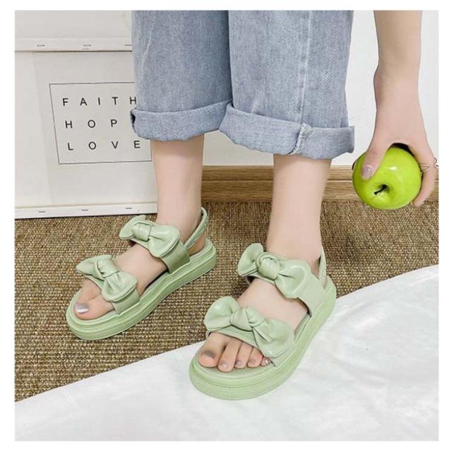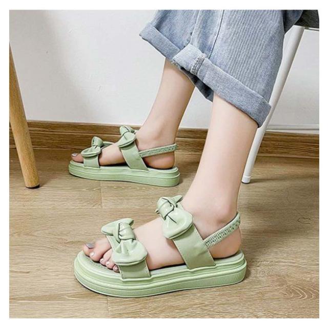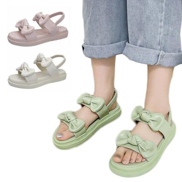 レディース サンダル 夏サンダル シューズ 夏靴 厚底 夏 リボン ゴム 厚底 サンダル 学生靴 韓国 おでかけ サンダル 滑る止め 柔らかい おしゃれ ヒール3cm