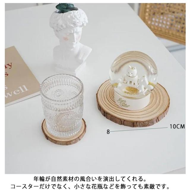 | シンプルで実用的な北欧風木製コースターです。 原木色で、自然の美しさを感じさせることができます。 テーブルの上にお華を添えて、どんなカップにもマッチする。 年輪が自然素材の風合いを演出してくれる。 コースターだけでなく、小さな花瓶などを飾っても素敵です。 | |