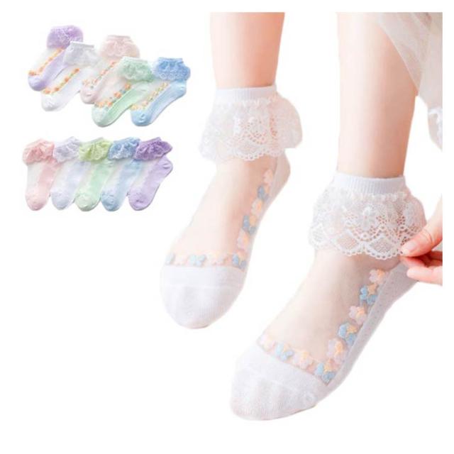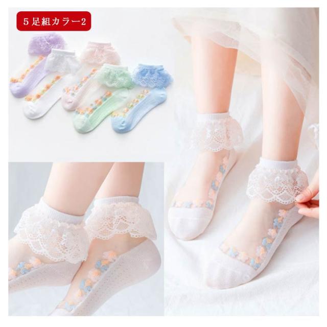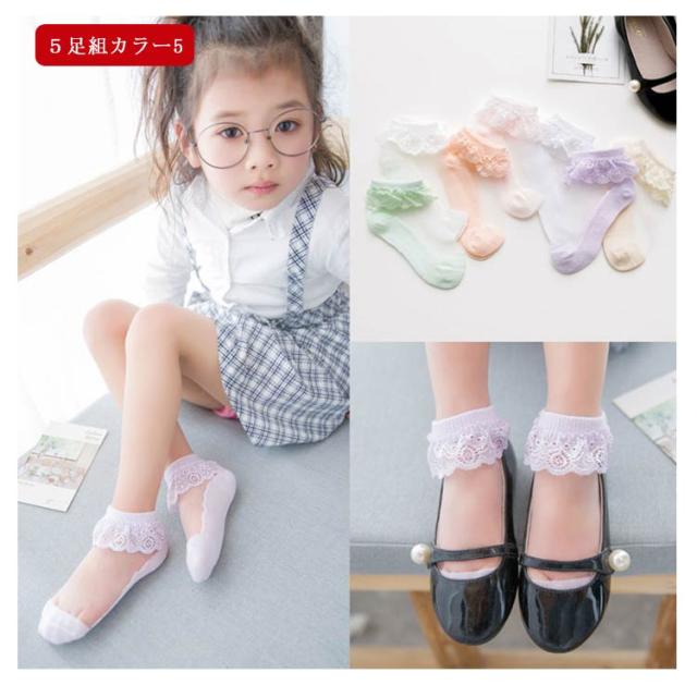 靴下 キッズ 女の子 可愛い 5足組 レース 靴下 キッズ フリル 子供靴下 夏 薄手 キッズソックス かわいい 子供 ジュニア 送料無料 おしゃれ ベビー レース 通気性 シンプル カジュアル